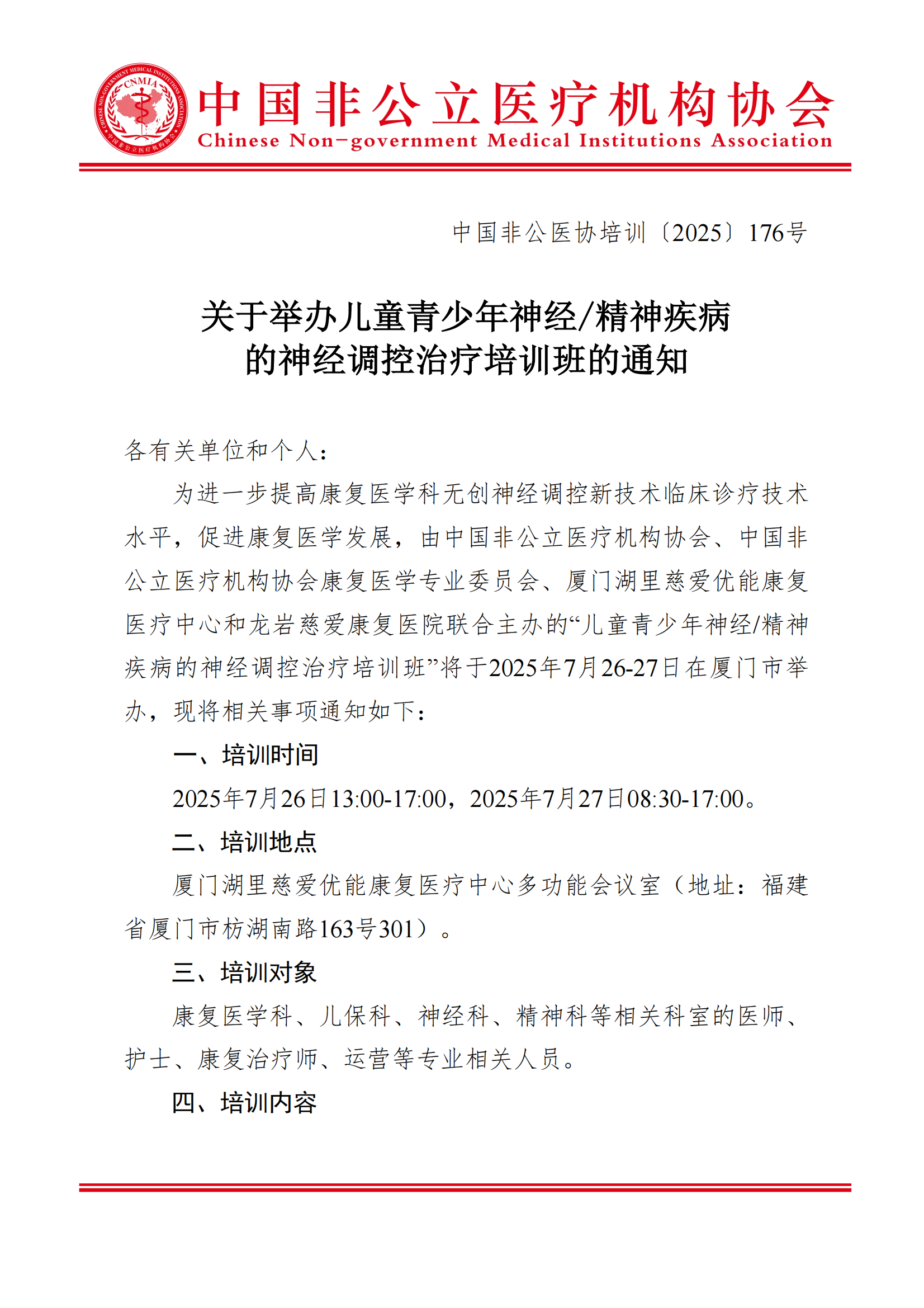 关于举办儿童青少年神经/精神疾病的神经调控治疗培训班的通知