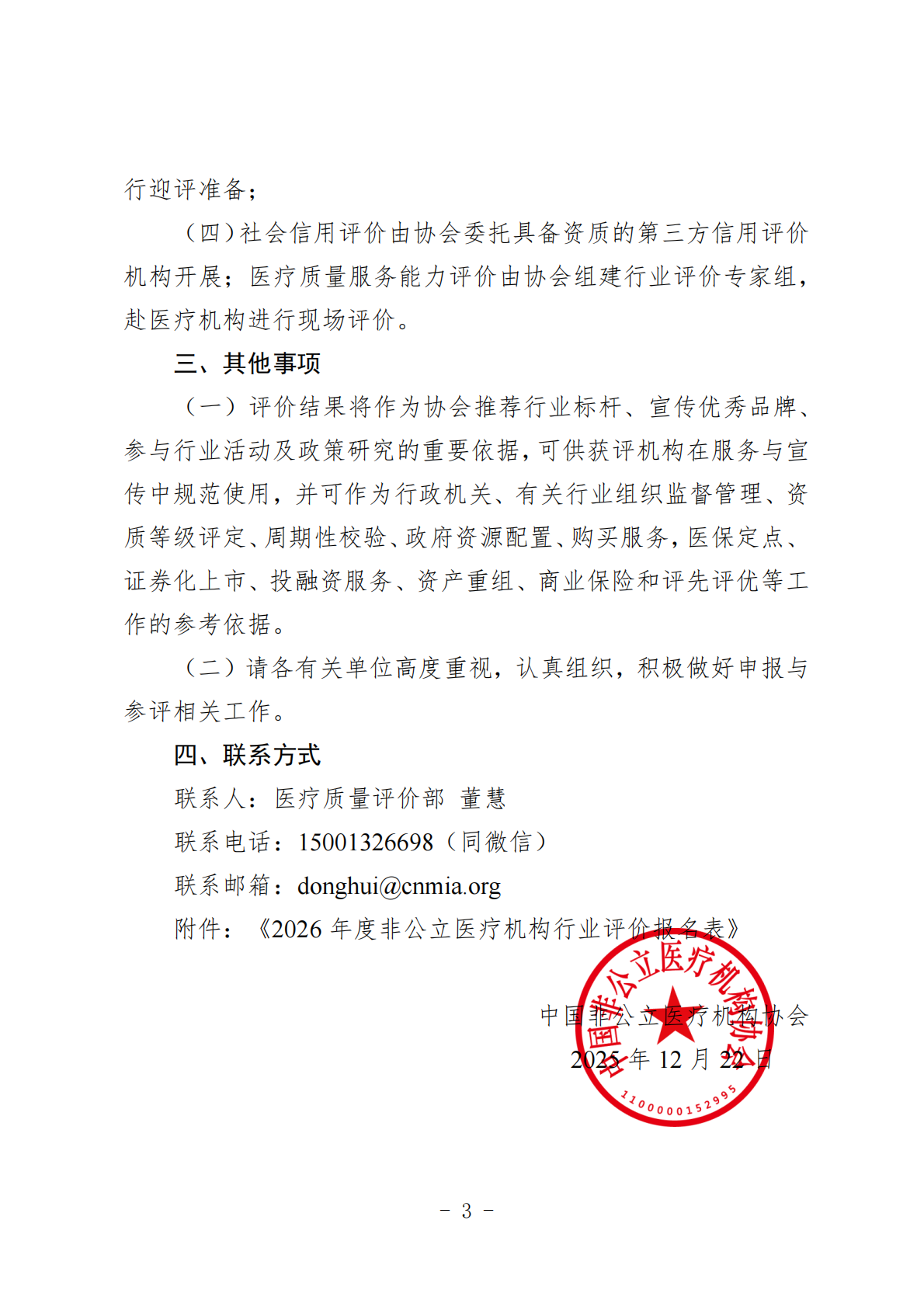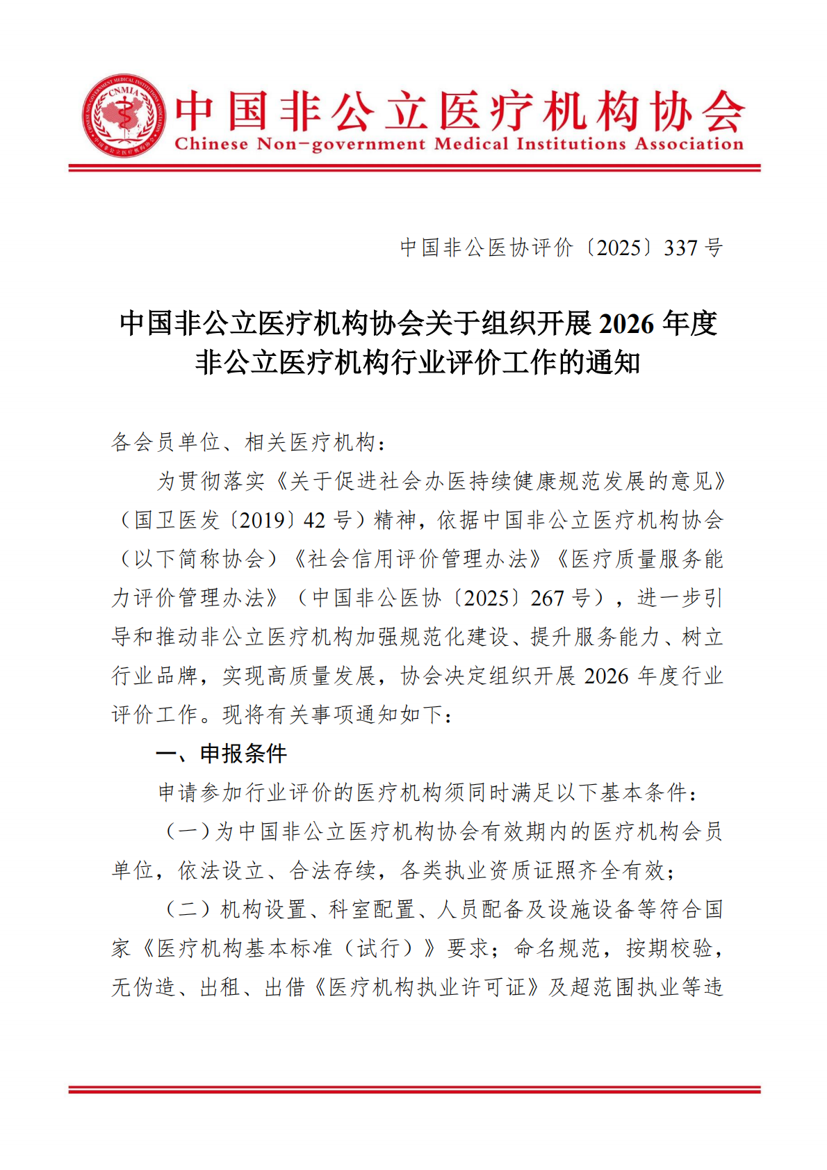行业评价丨中国非公立医疗机构协会关于组织开展2026年度非公立医疗机构行业评价工作的通知