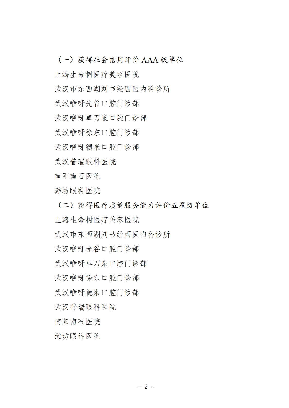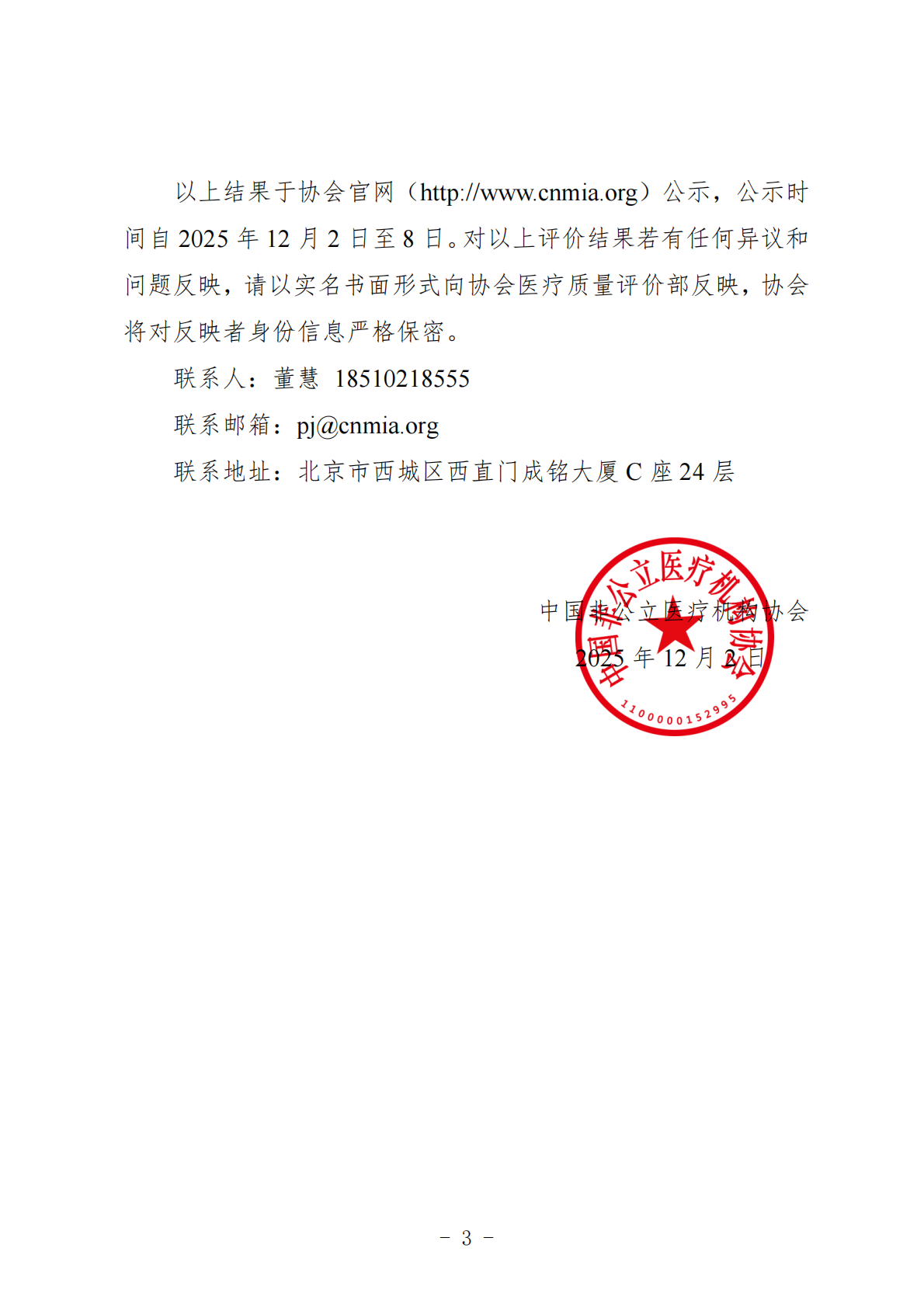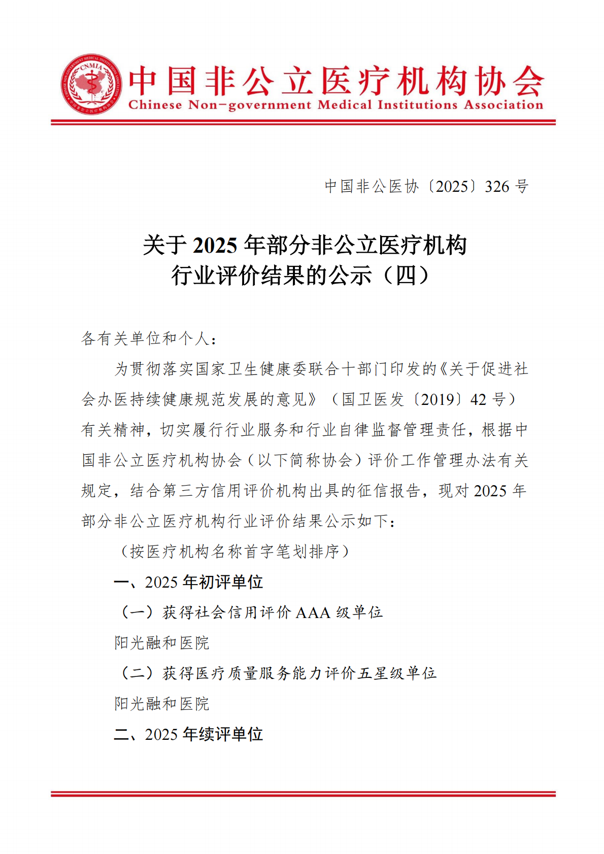 关于2025年部分非公立医疗机构行业评价结果的公示(四)