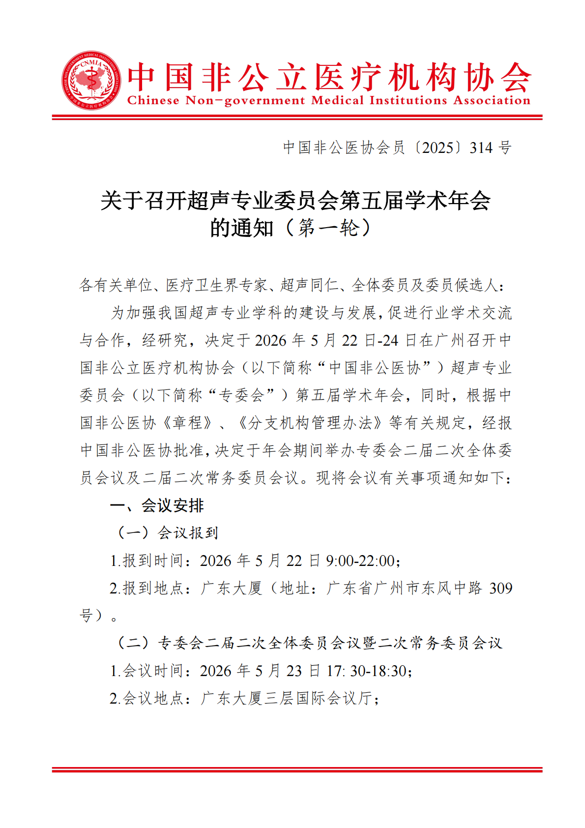 分支机构丨关于召开超声专业委员会第五届学术年会的通知(第一轮)
