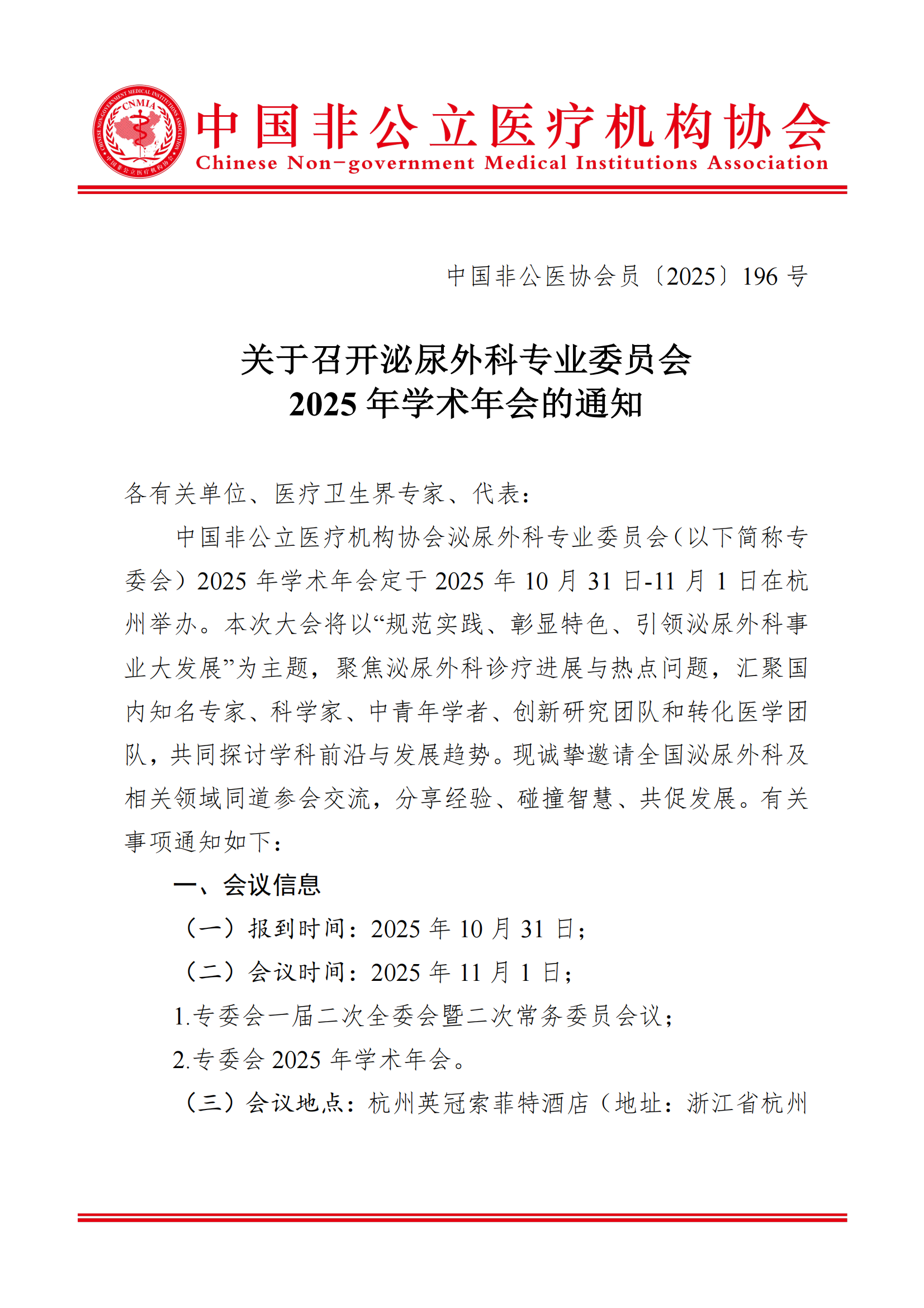 分支机构丨关于召开泌尿外科专业委员会2025年学术年会的通知
