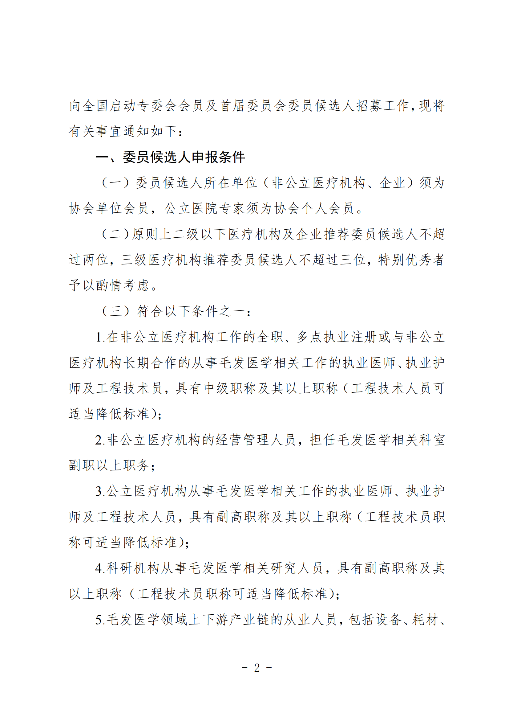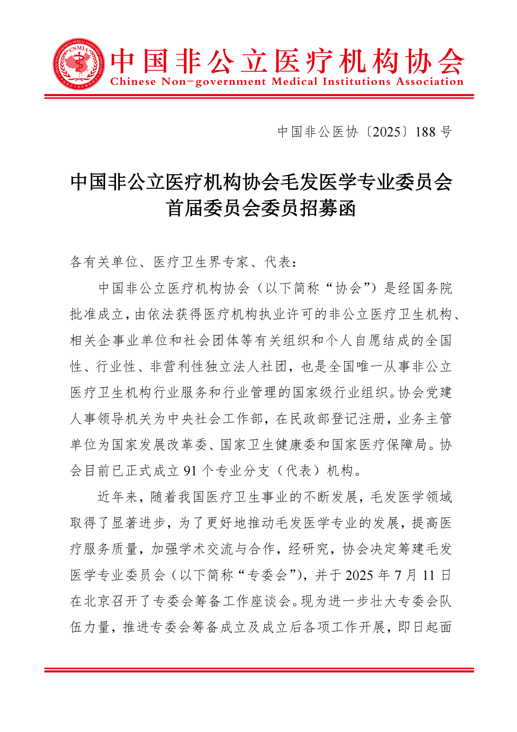 招募通知丨中国非公立医疗机构协会毛发医学专业委员会首届委员会委员招募函