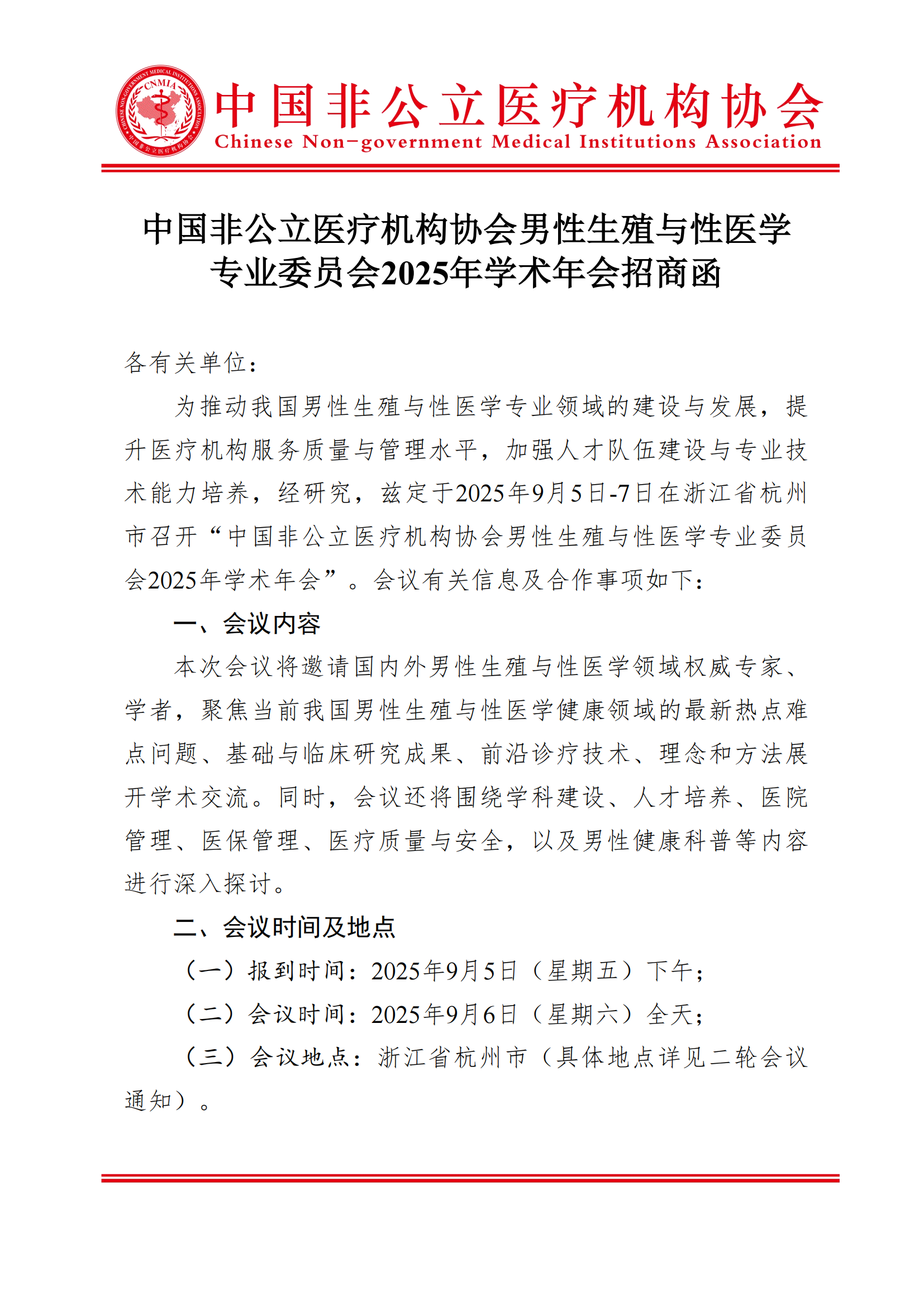 商务邀请函丨中国非公立医疗机构协会男性生殖与性医学专业委员会2025年学术年会招商函
