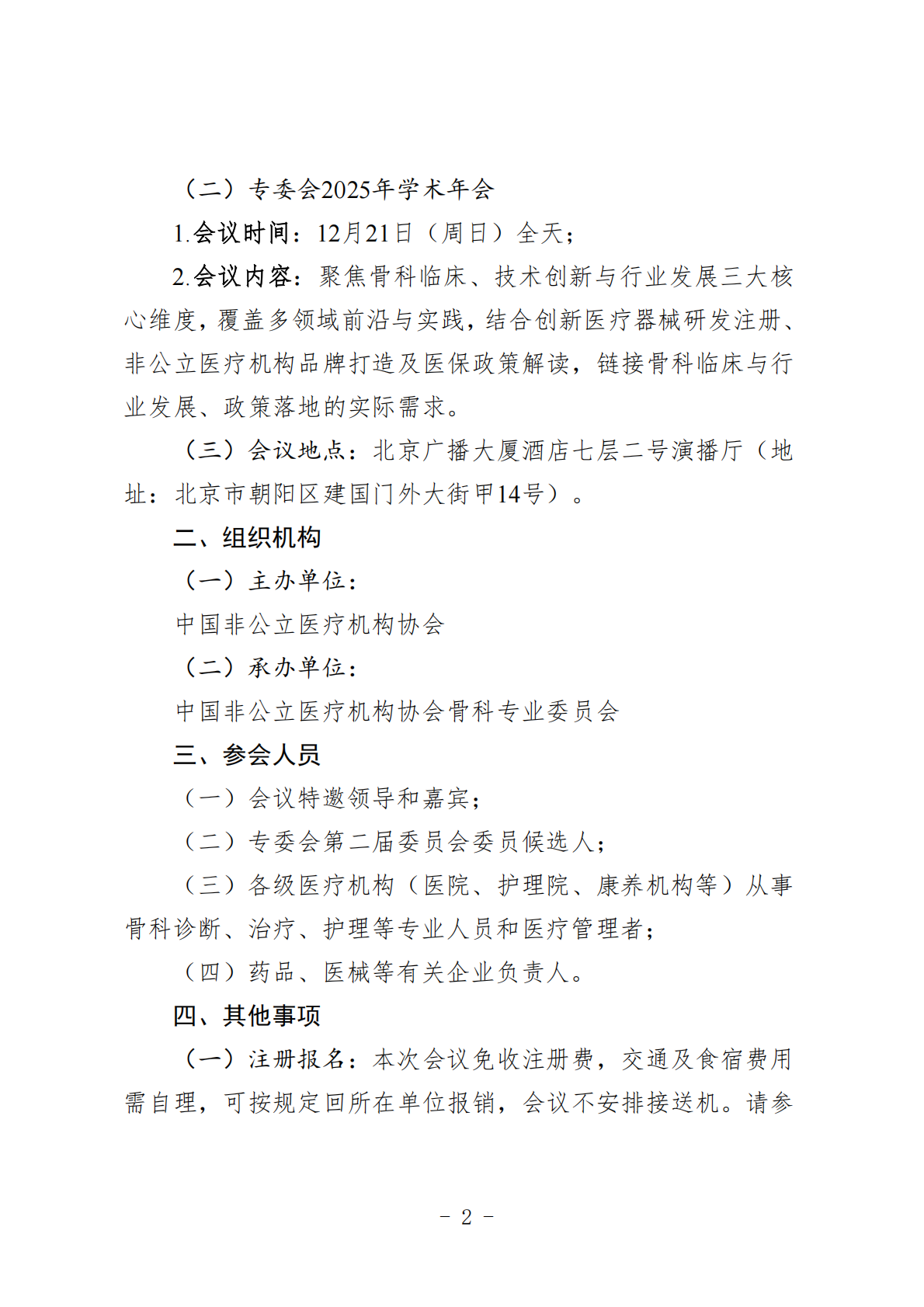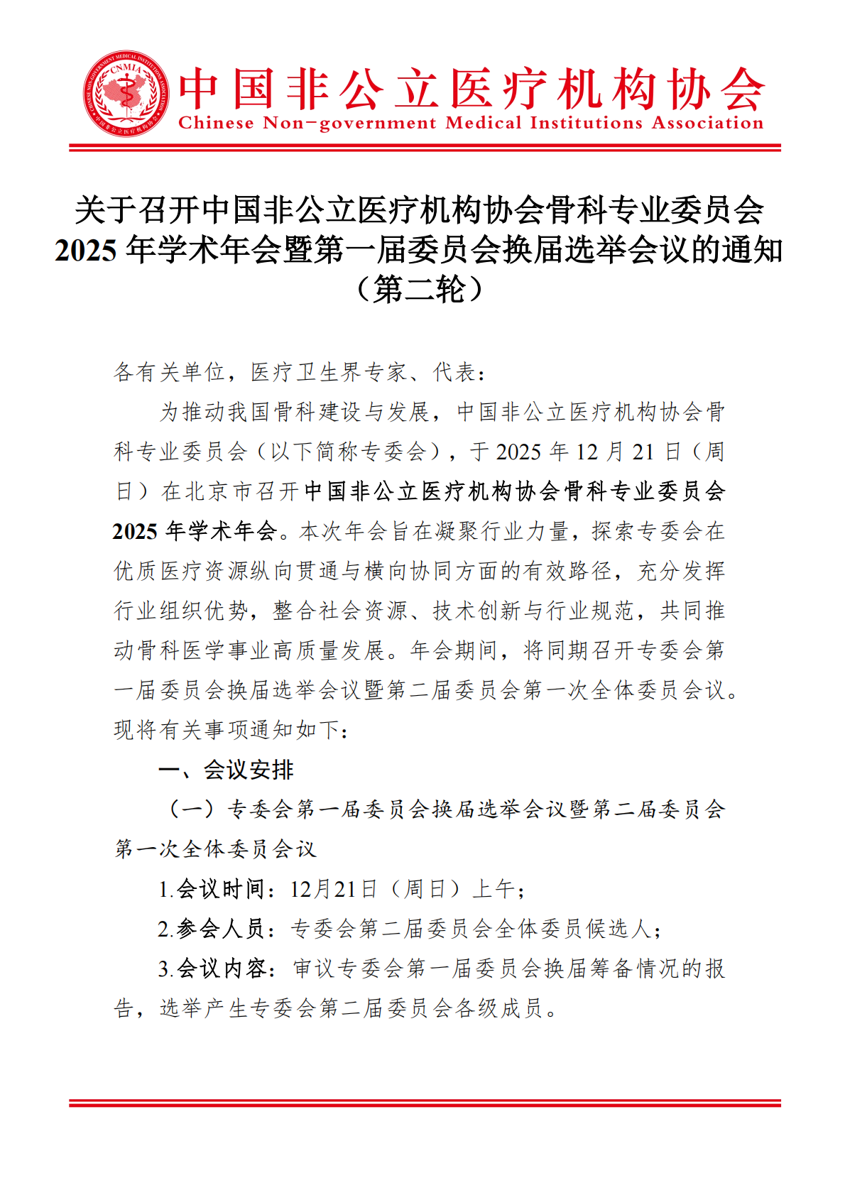 分支机构丨关于召开中国非公立医疗机构协会骨科专业委员会2025年学术年会暨第一届委员会换届选举会议的通知(第二轮)