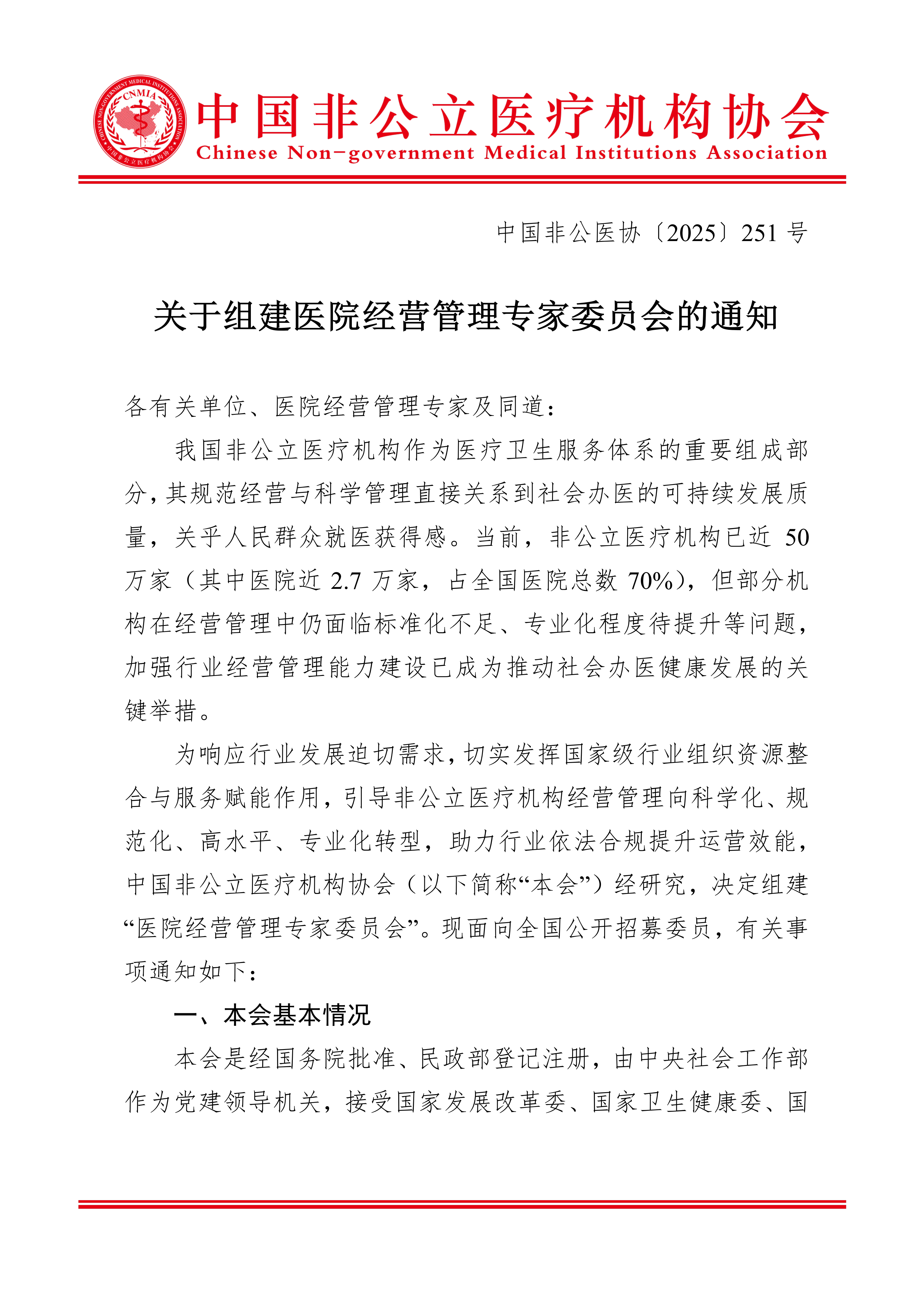 今日头条丨关于组建医院经营管理专家委员会的通知