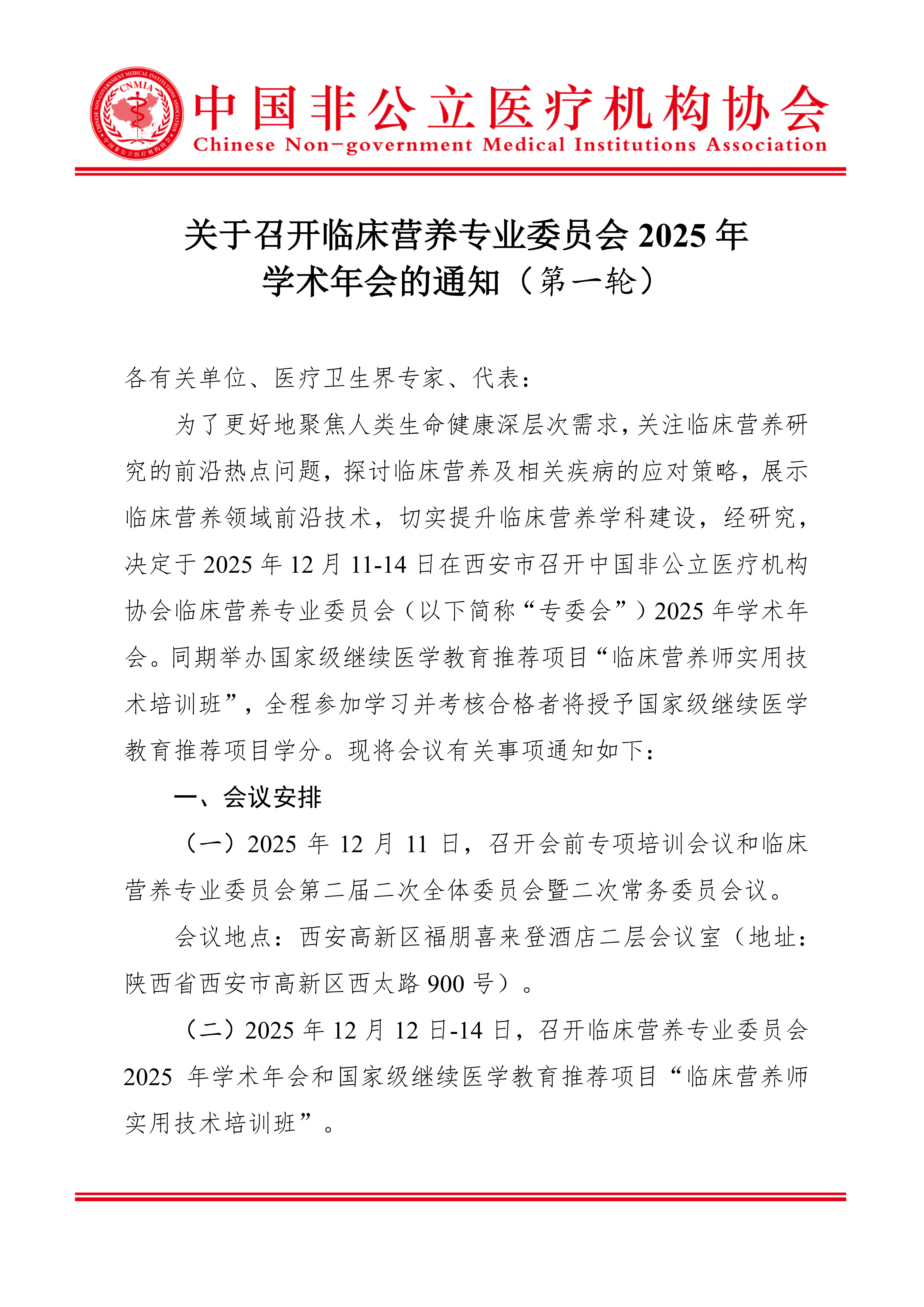 分支机构丨关于召开临床营养专业委员会2025年学术年会的通知(第一轮)