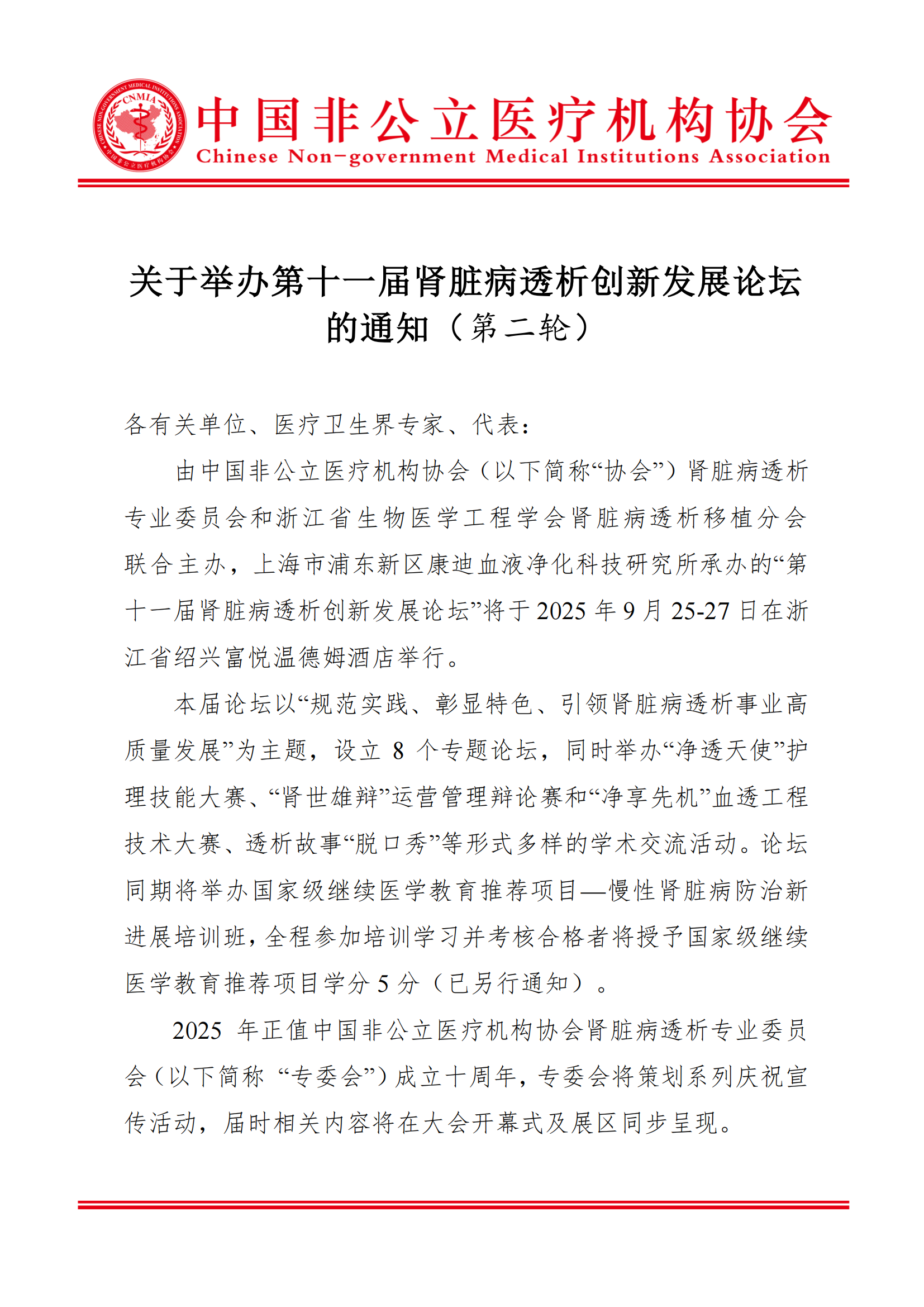 分支机构丨关于举办第十一届肾脏病透析创新发展论坛的通知(第二轮)
