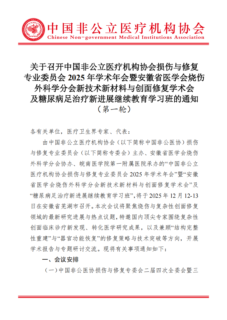 分支机构丨关于召开中国非公立医疗机构协会损伤与修复专业委员会2025年学术年会的通知