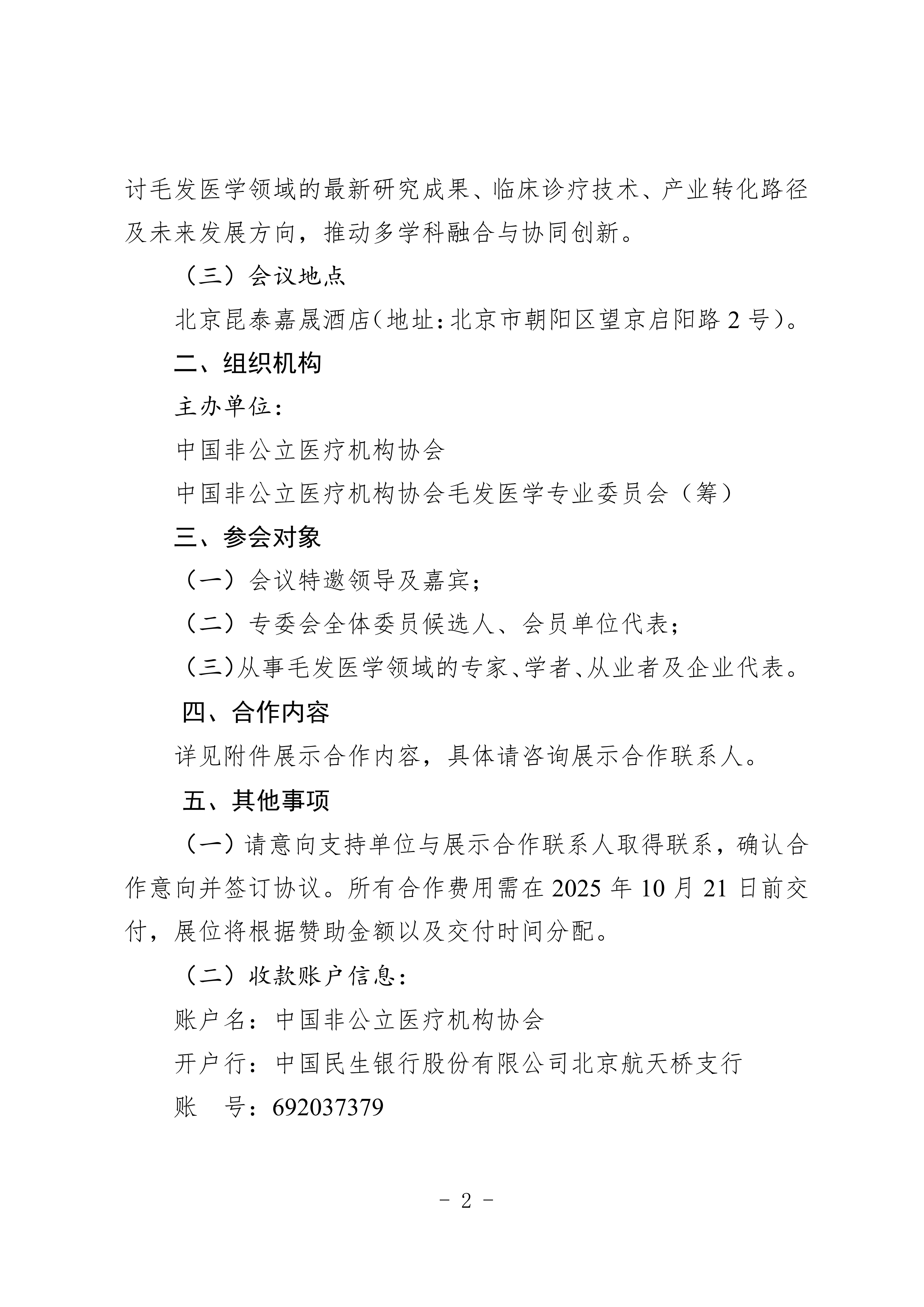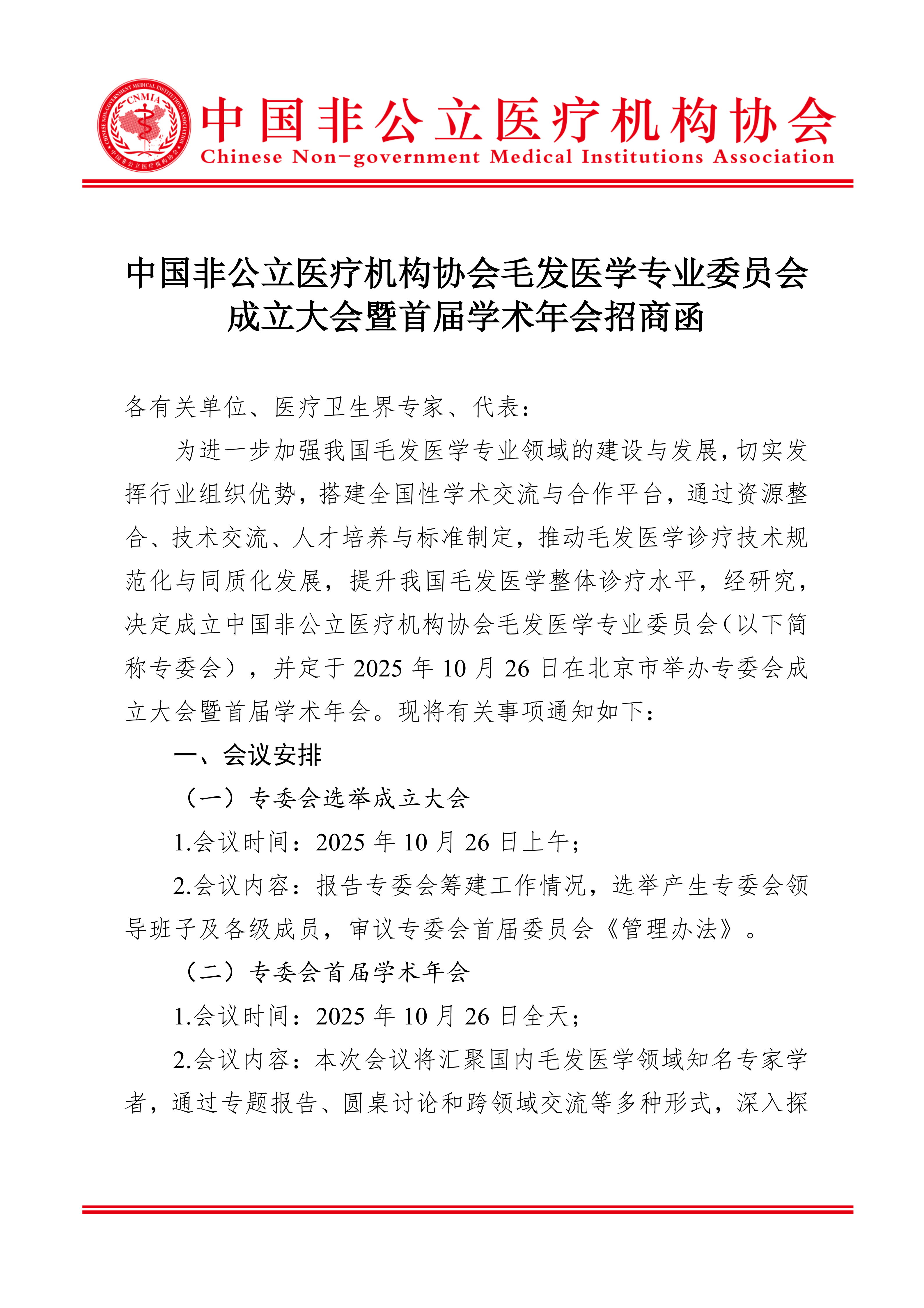 商务邀请函丨中国非公立医疗机构协会毛发医学专业委员会成立大会暨首届学术年会招商函
