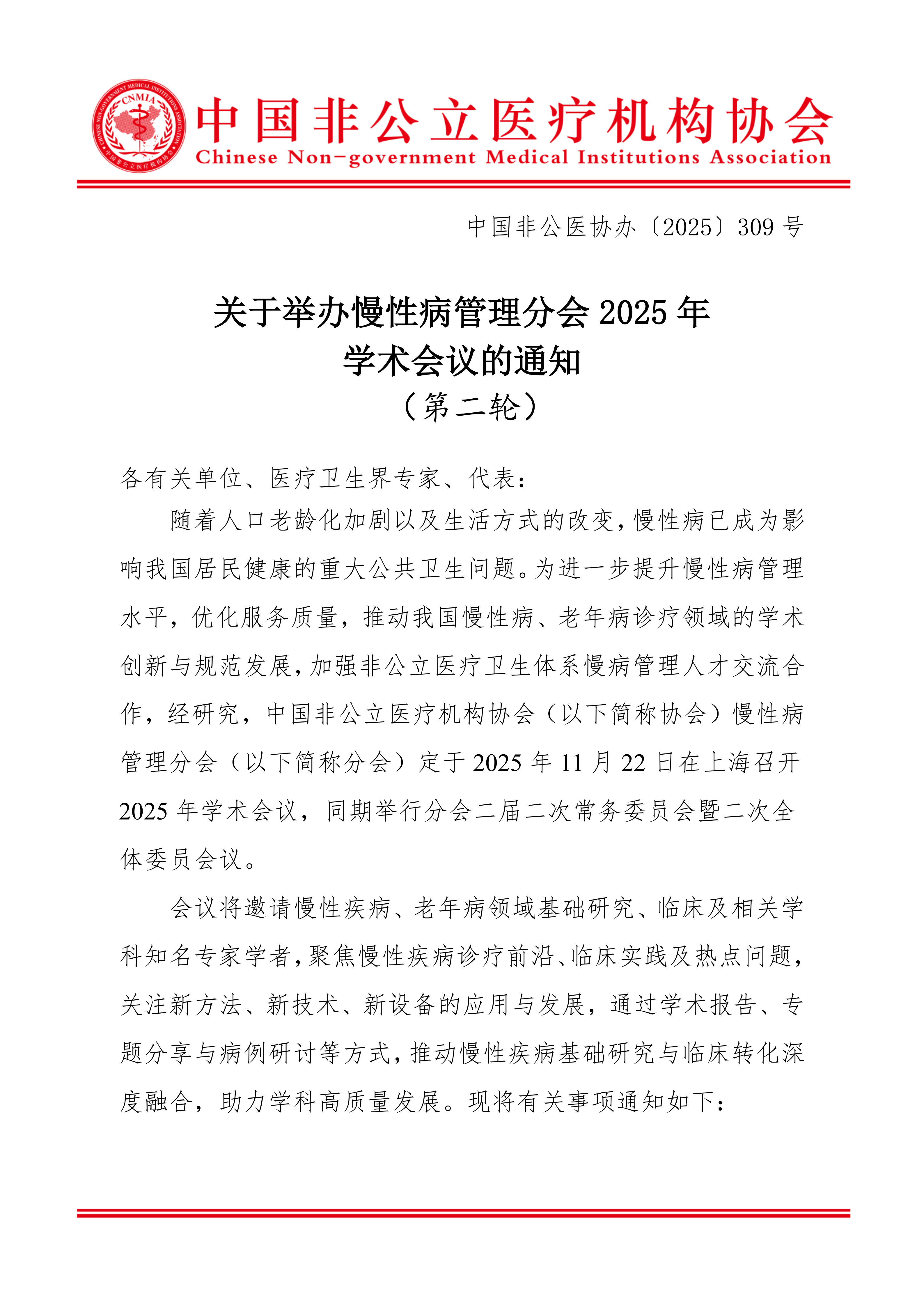 分支机构丨关于举办慢性病管理分会2025年学术会议的通知(第二轮)