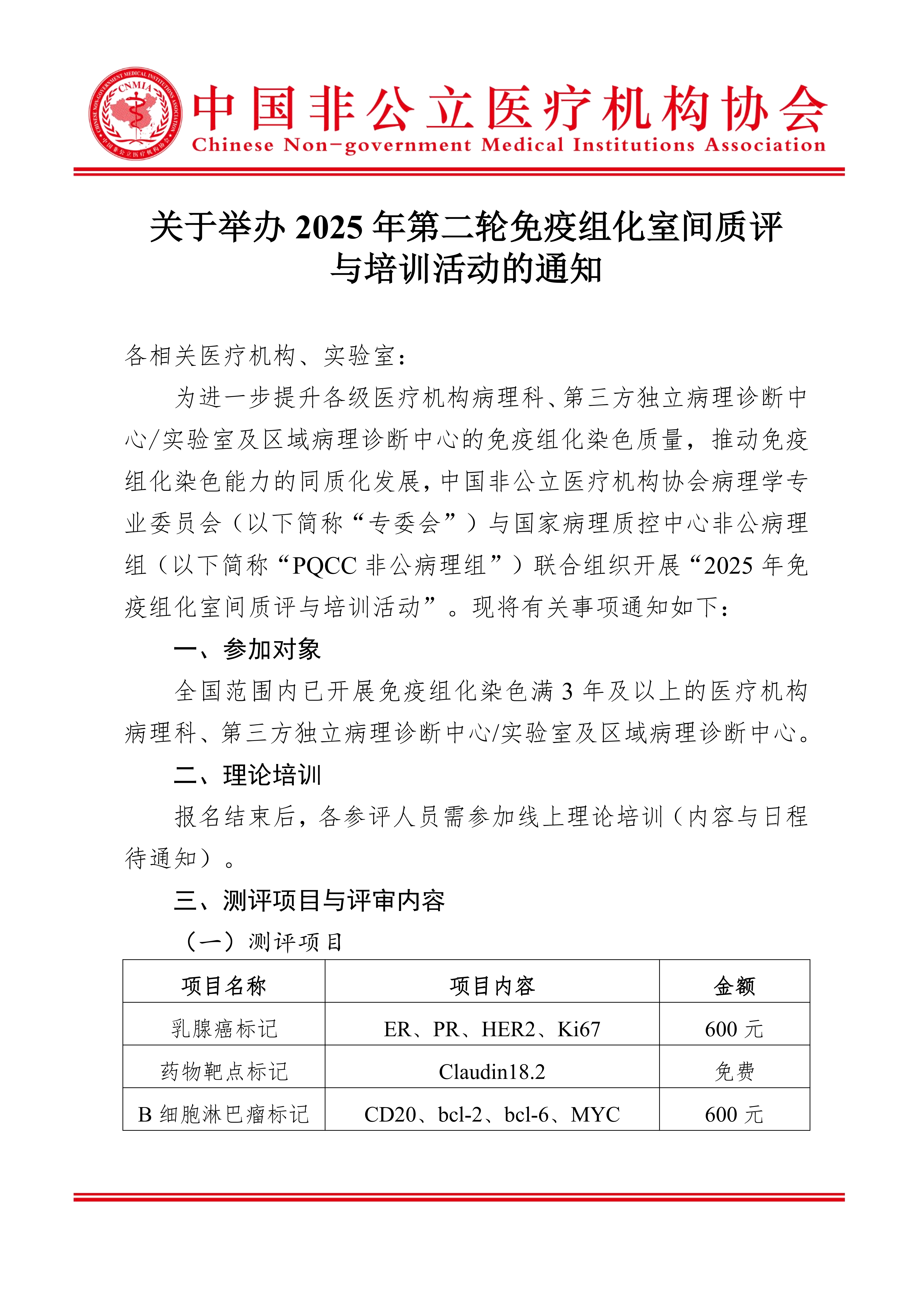 分支机构丨关于举办2025年第二轮免疫组化室间质评与培训活动的通知