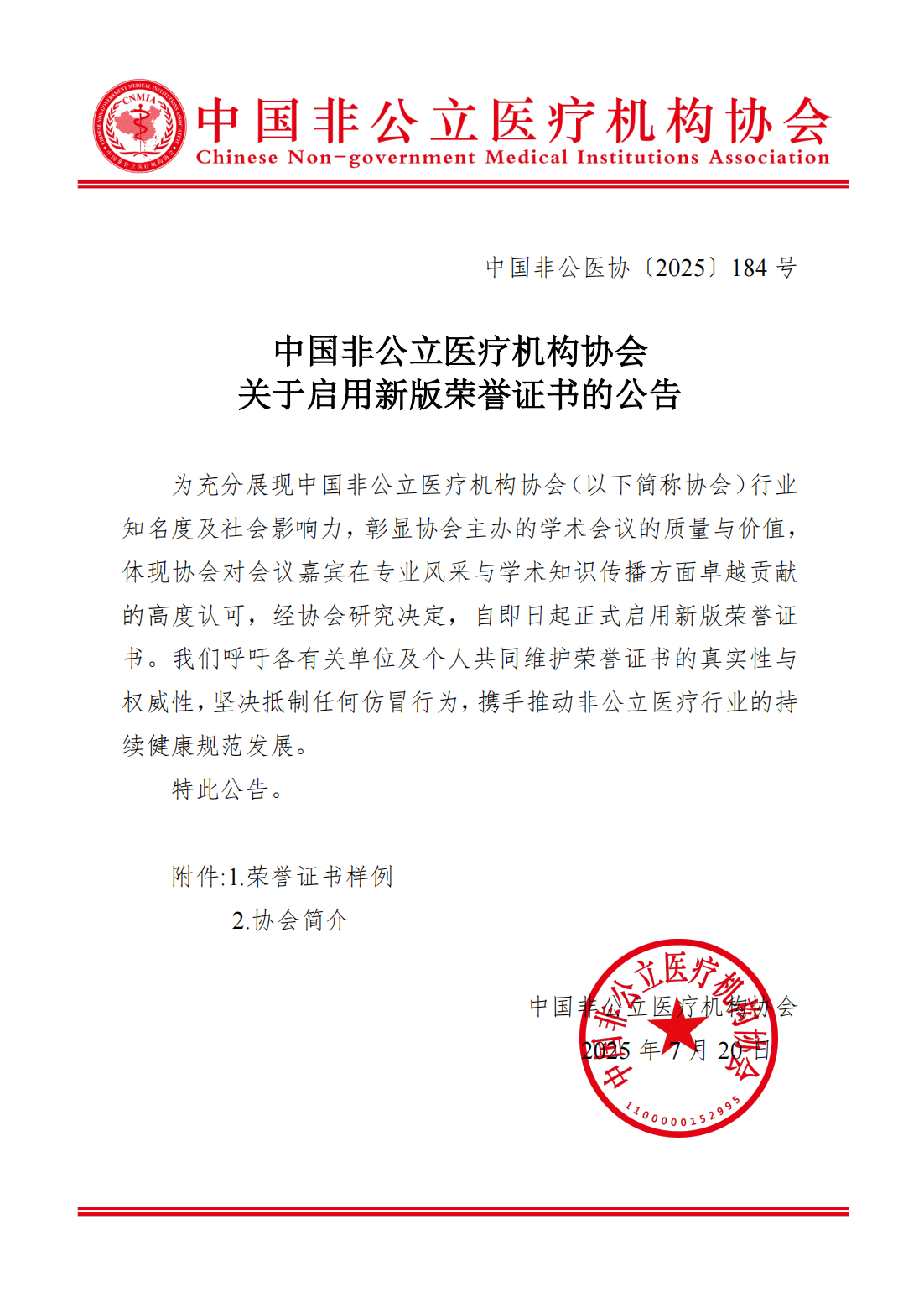今日头条丨中国非公立医疗机构协会关于启用新版荣誉证书的公告