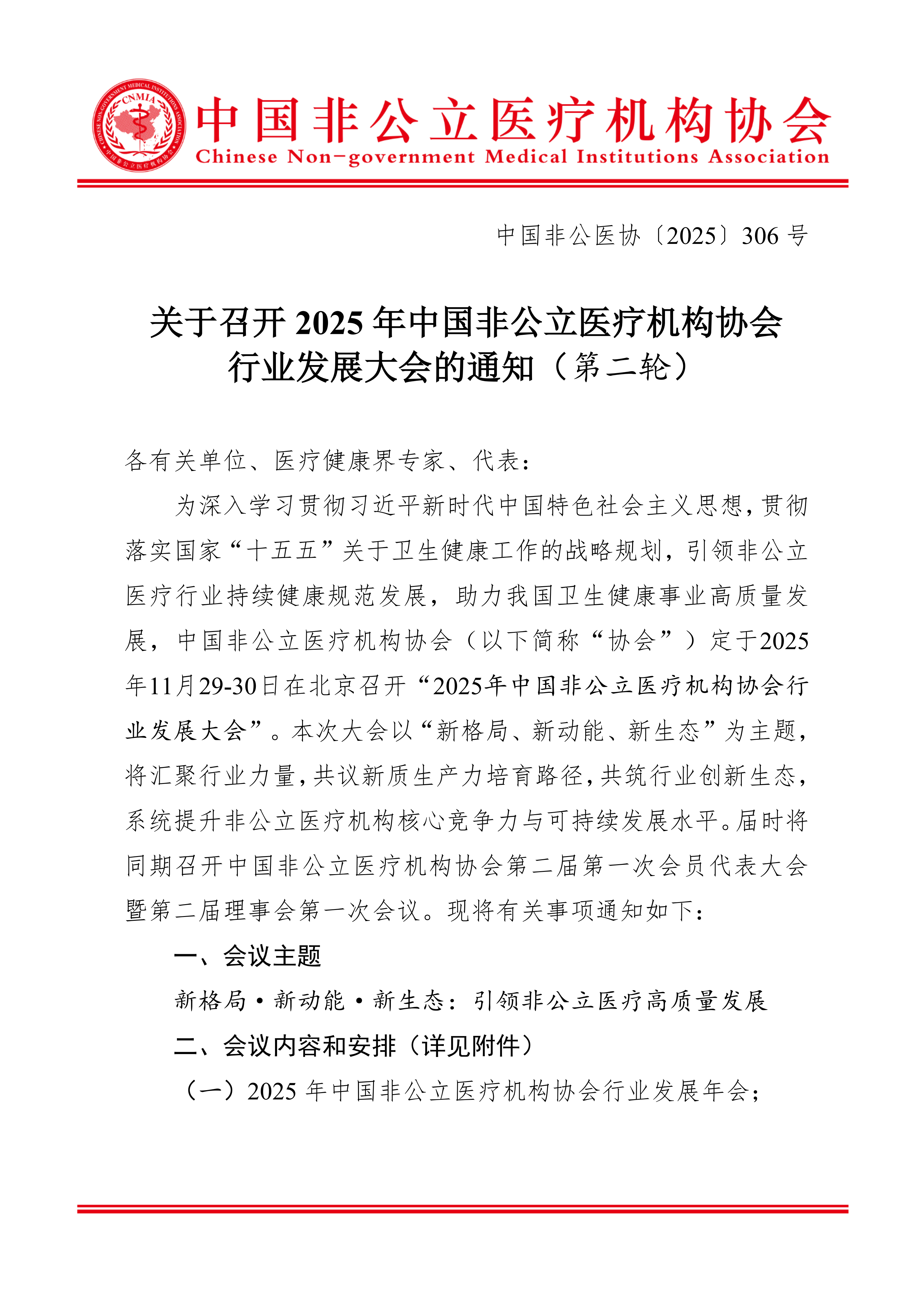 今日头条丨关于召开2025年中国非公立医疗机构协会行业发展大会的通知(第二轮)