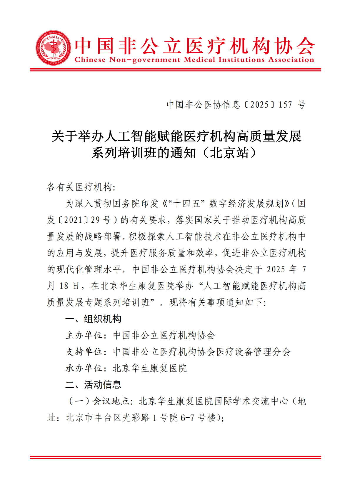 会议通知丨关于举办人工智能赋能医疗机构高质量发展系列培训班的通知(北京站)