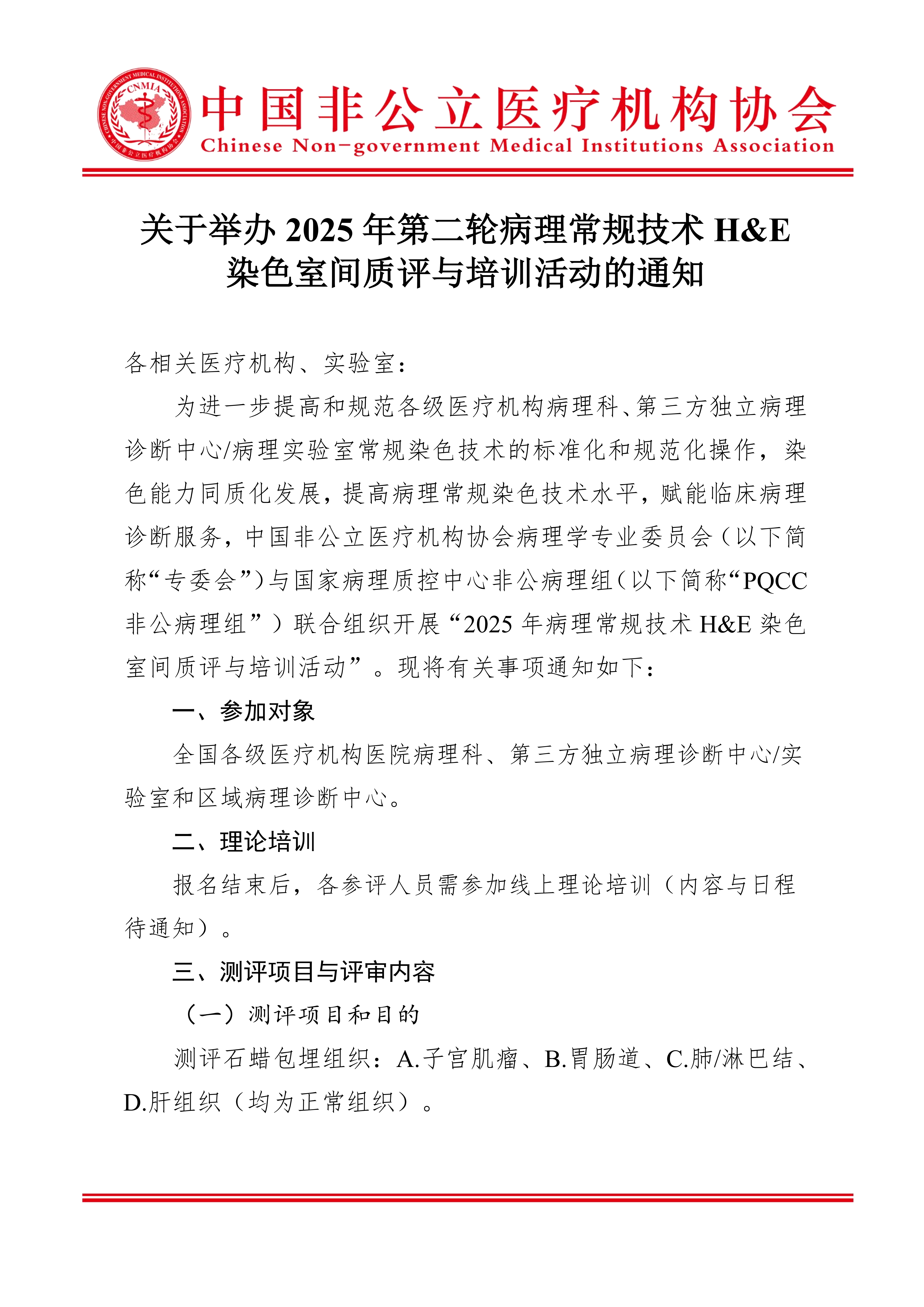 分支机构丨关于举办2025年第二轮病理常规技术H&E染色室间质评与培训活动的通知