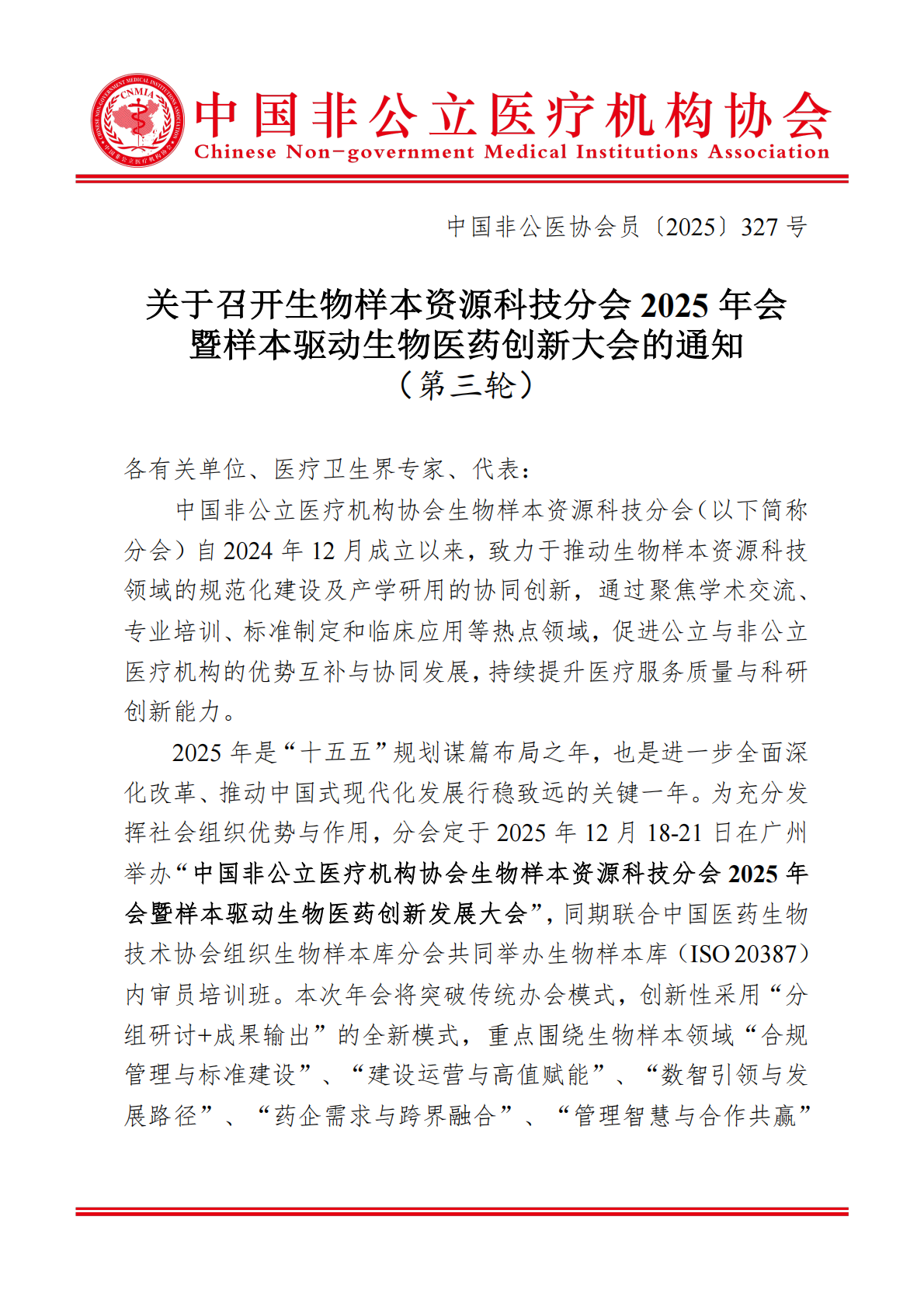 分支机构丨关于召开生物样本资源科技分会2025年会暨样本驱动生物医药创新大会的通知(第三轮)
