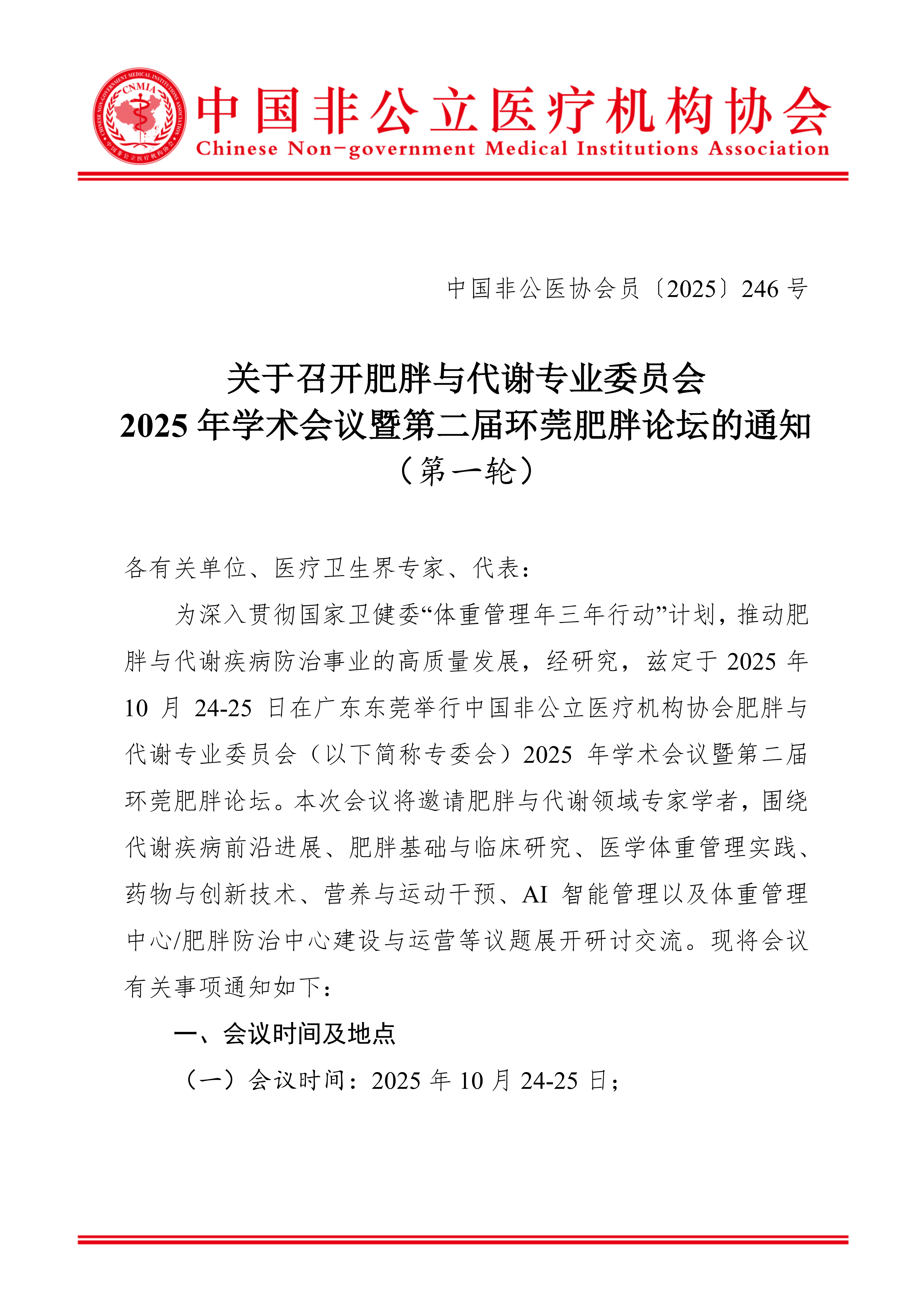 分支机构丨关于召开肥胖与代谢专业委员会2025年学术会议暨第二届环莞肥胖论坛的通知(第一轮)