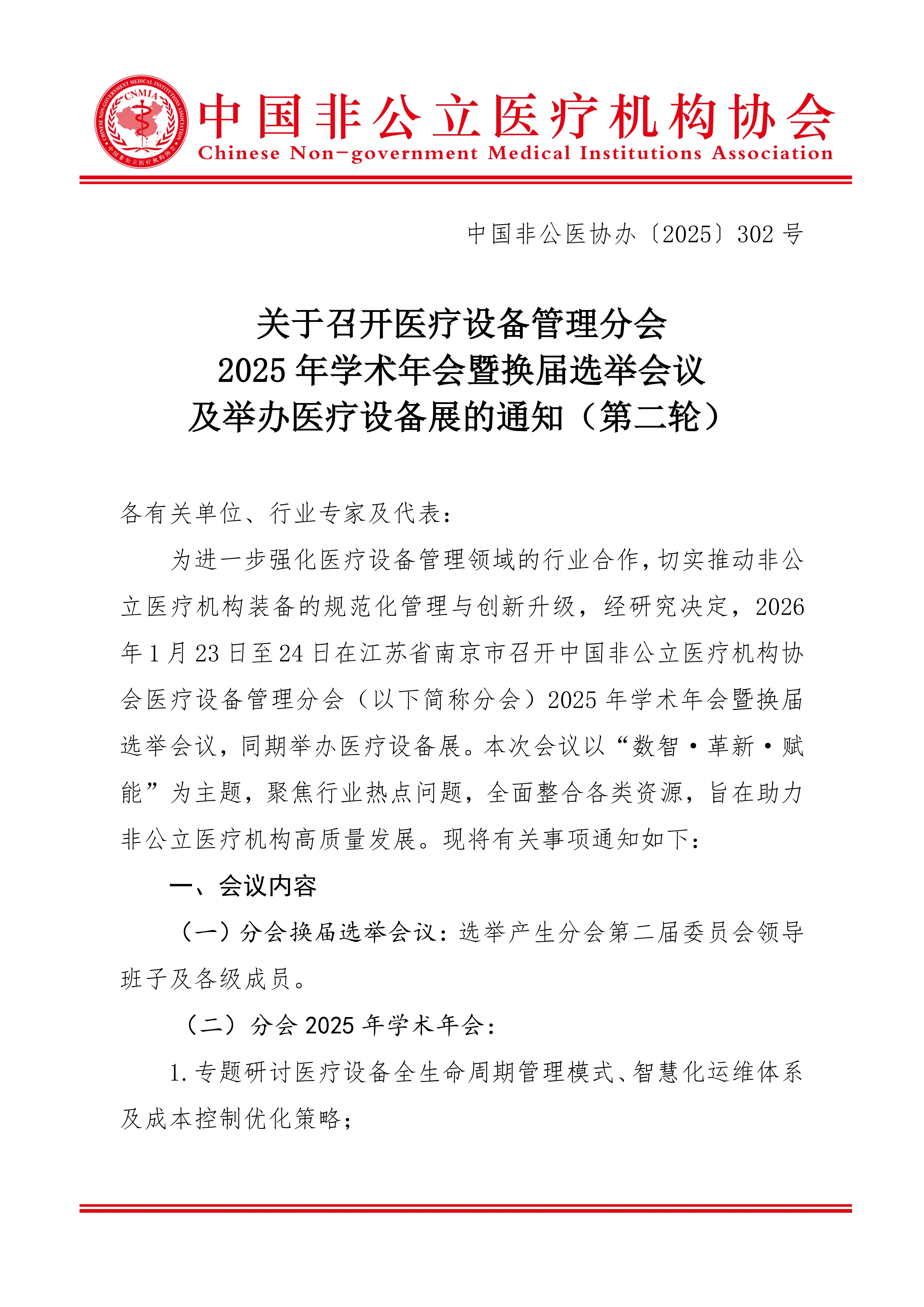 分支机构丨关于召开医疗设备管理分会2025年学术年会暨换届选举会议及举办医疗设备展的通知(第二轮)