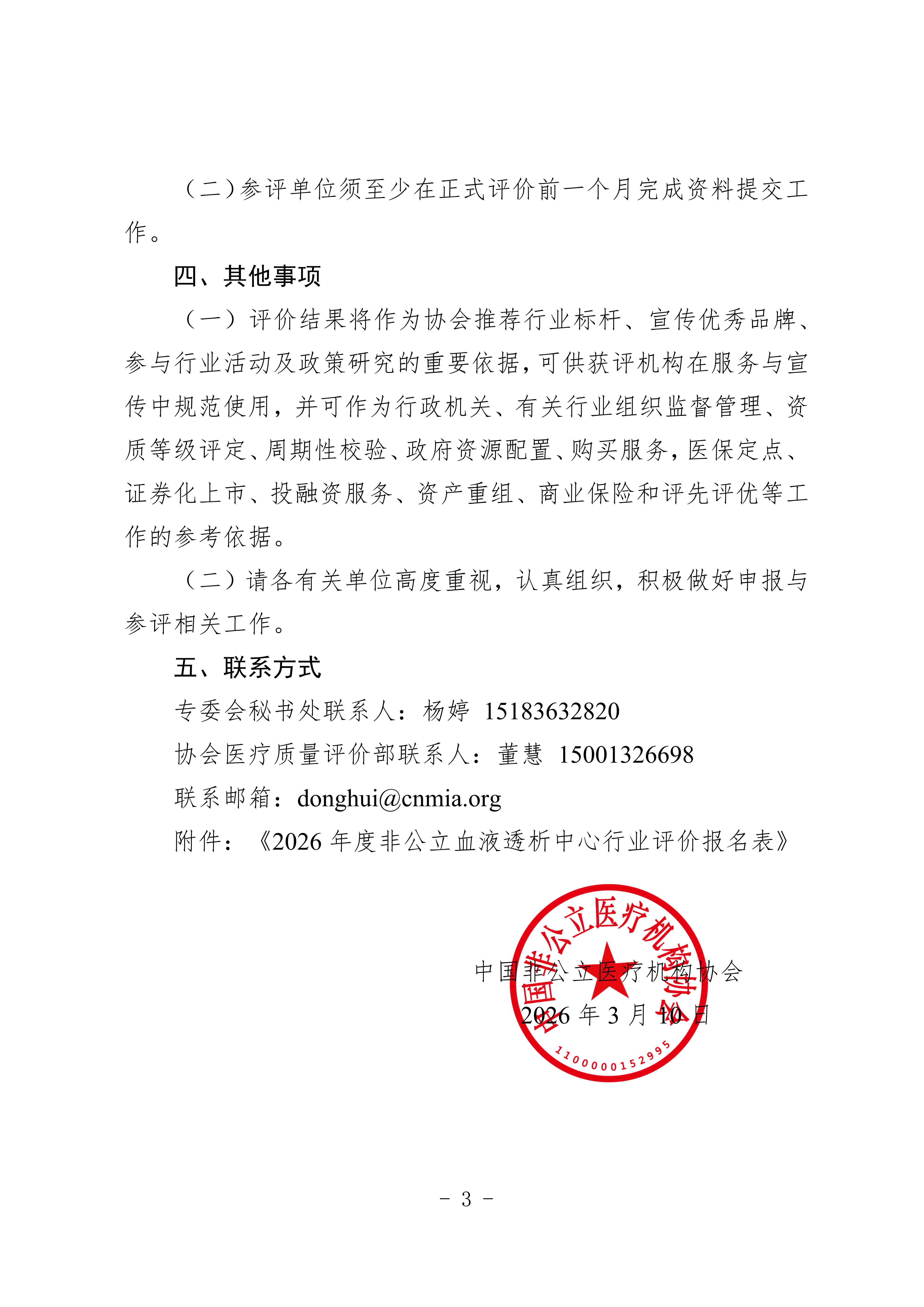 中国非公立医疗机构协会 关于开展2026年度非公立血液透析中心行业评价工作的通知
