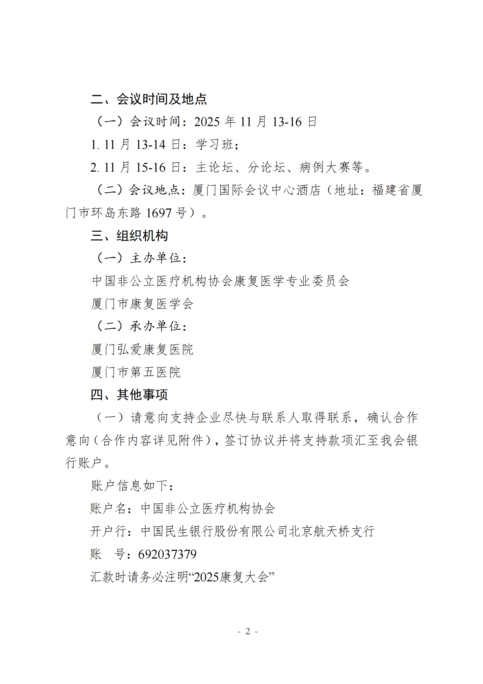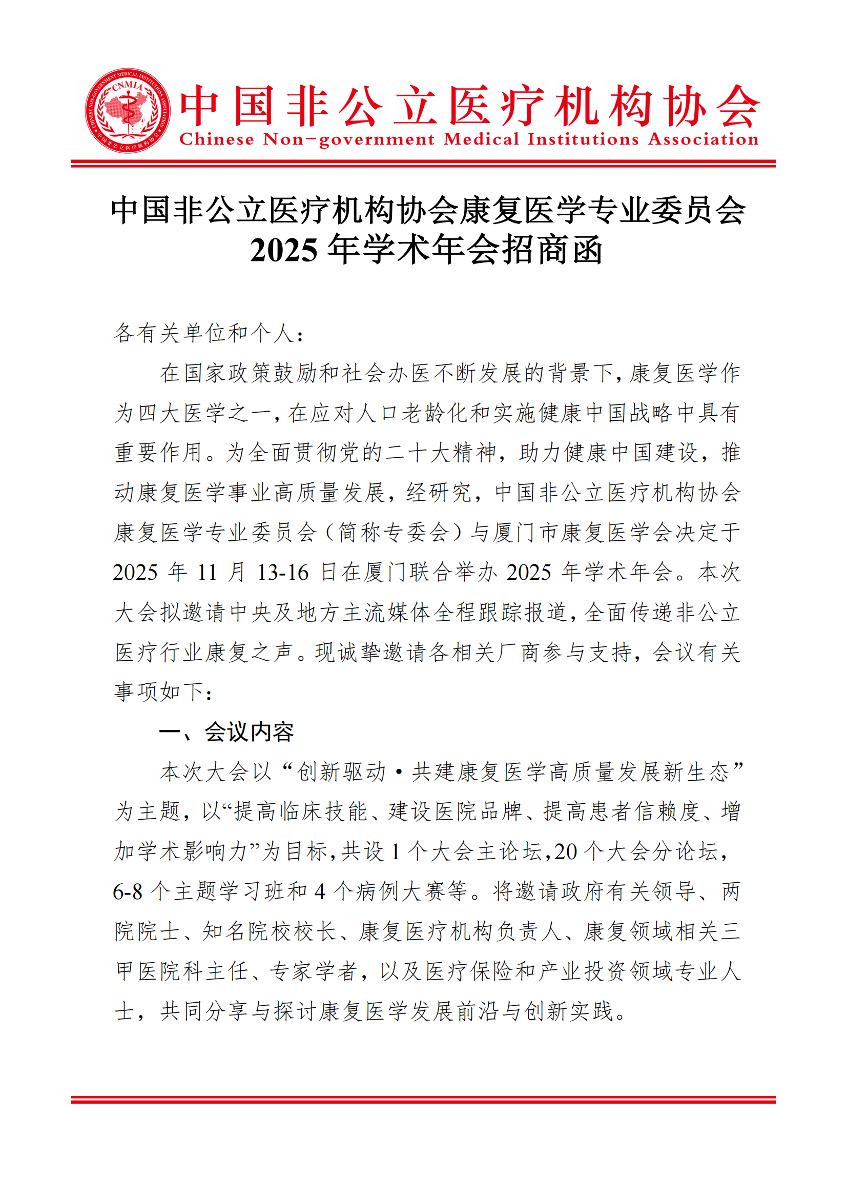 商务邀请函丨中国非公立医疗机构协会康复医学专业委员会2025年学术年会招商函