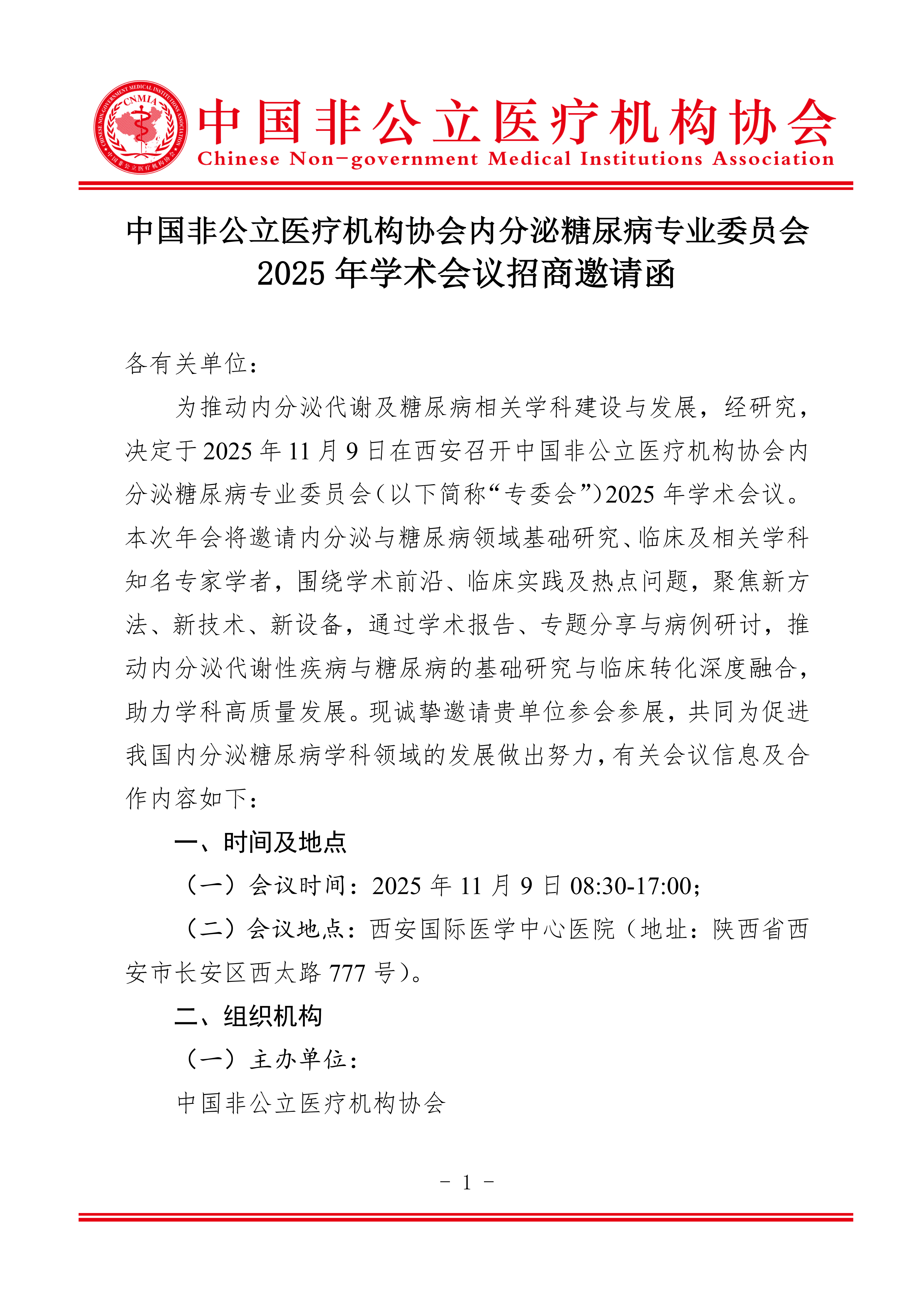 商务邀请函丨中国非公立医疗机构协会内分泌糖尿病专业委员会2025年学术会议招商邀请函