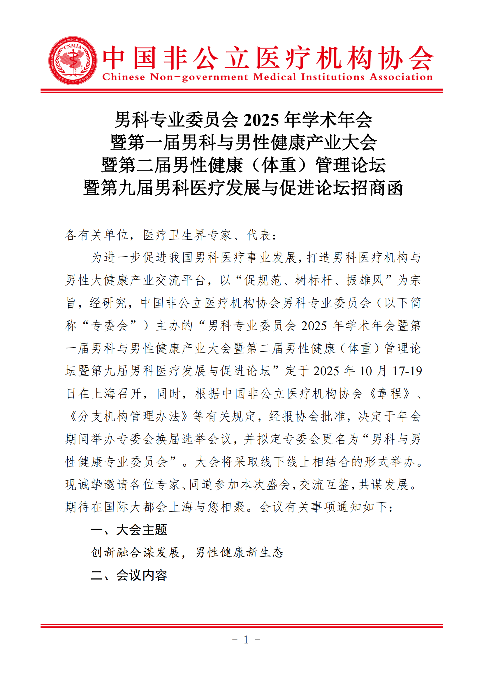 商务邀请函丨男科专业委员会2025年学术年会招商函