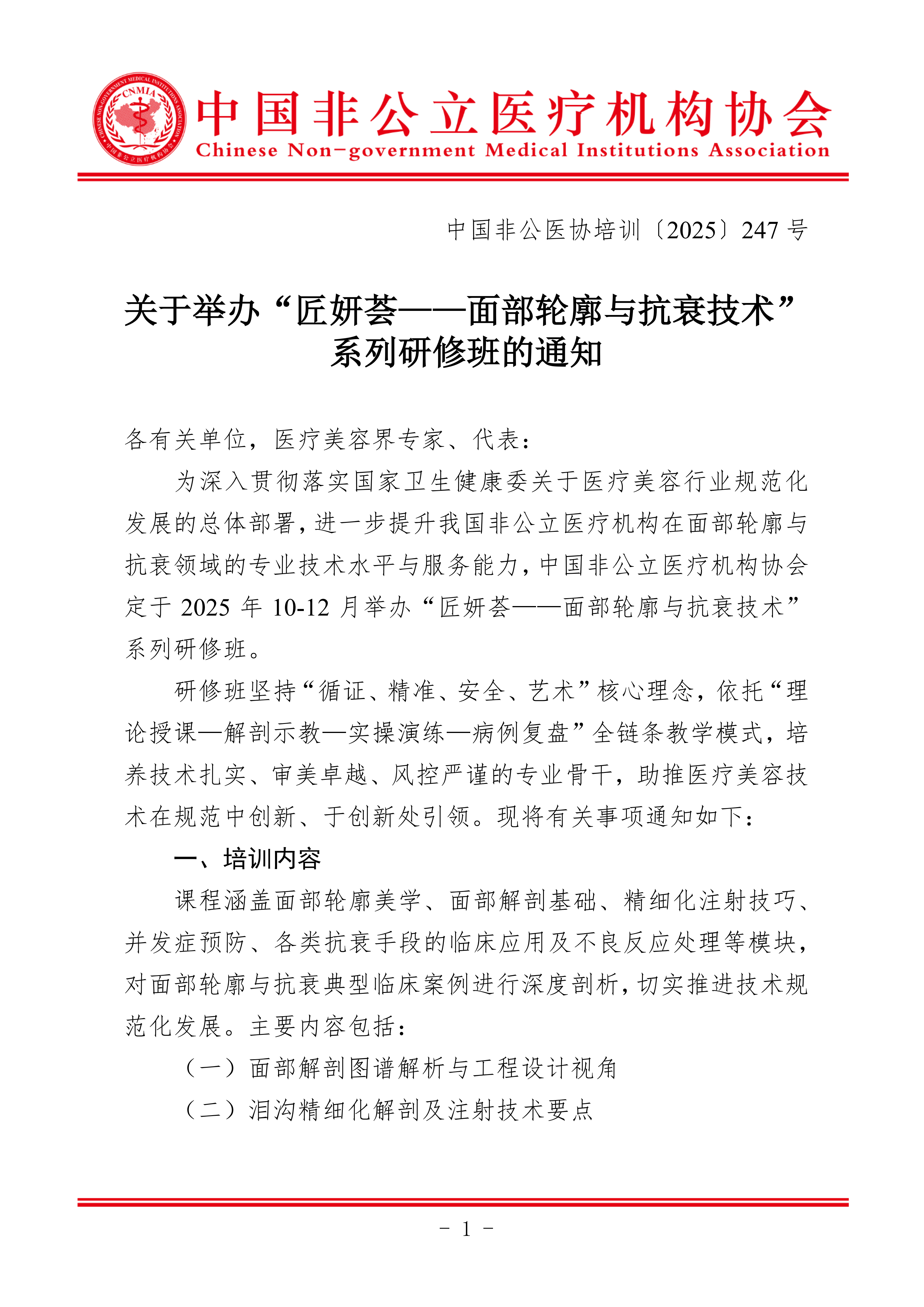 专业培训丨关于举办“匠妍荟——面部轮廓与抗衰技术”系列研修班的通知