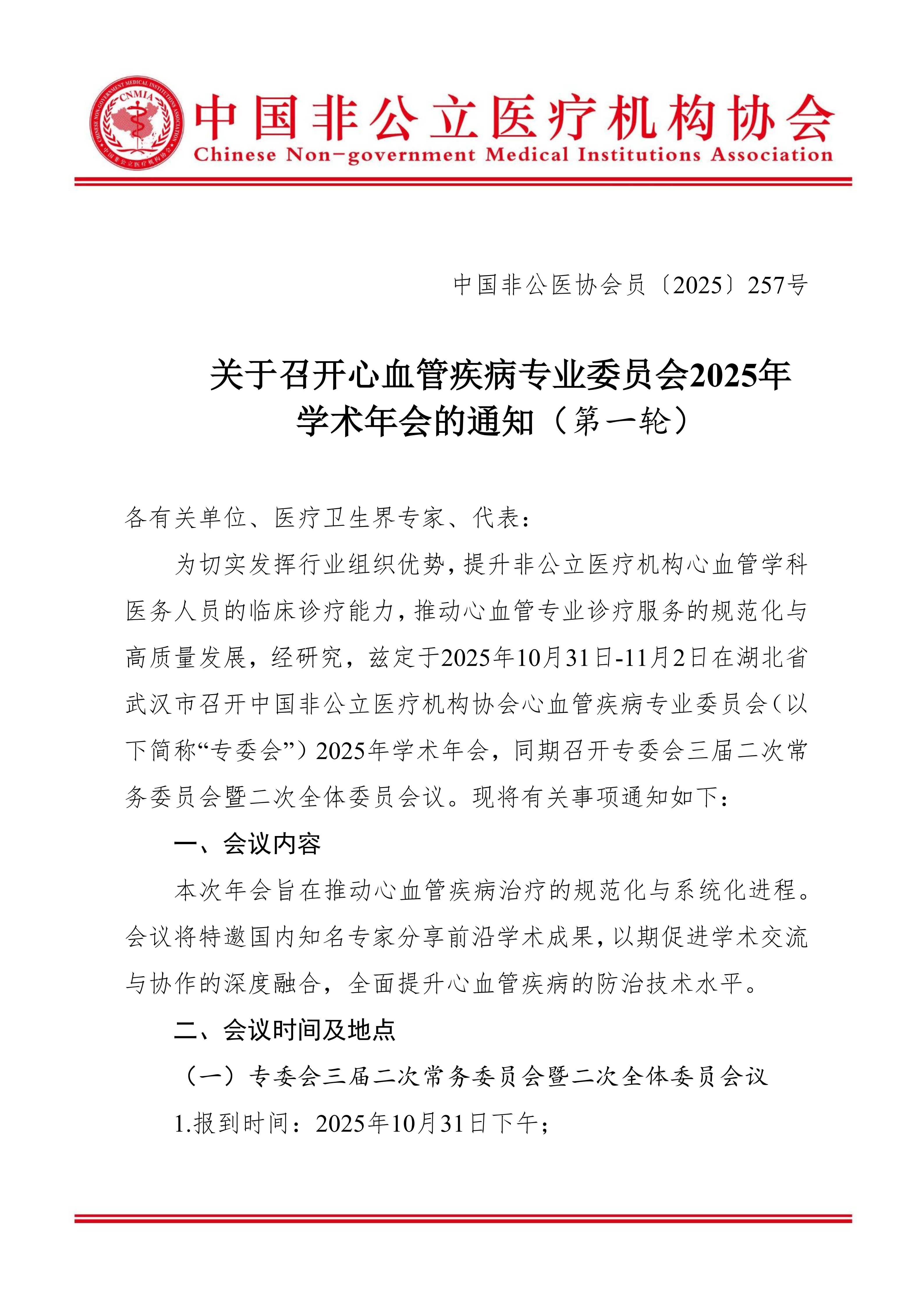 分支机构丨关于召开心血管疾病专业委员会2025年学术年会的通知(第一轮)
