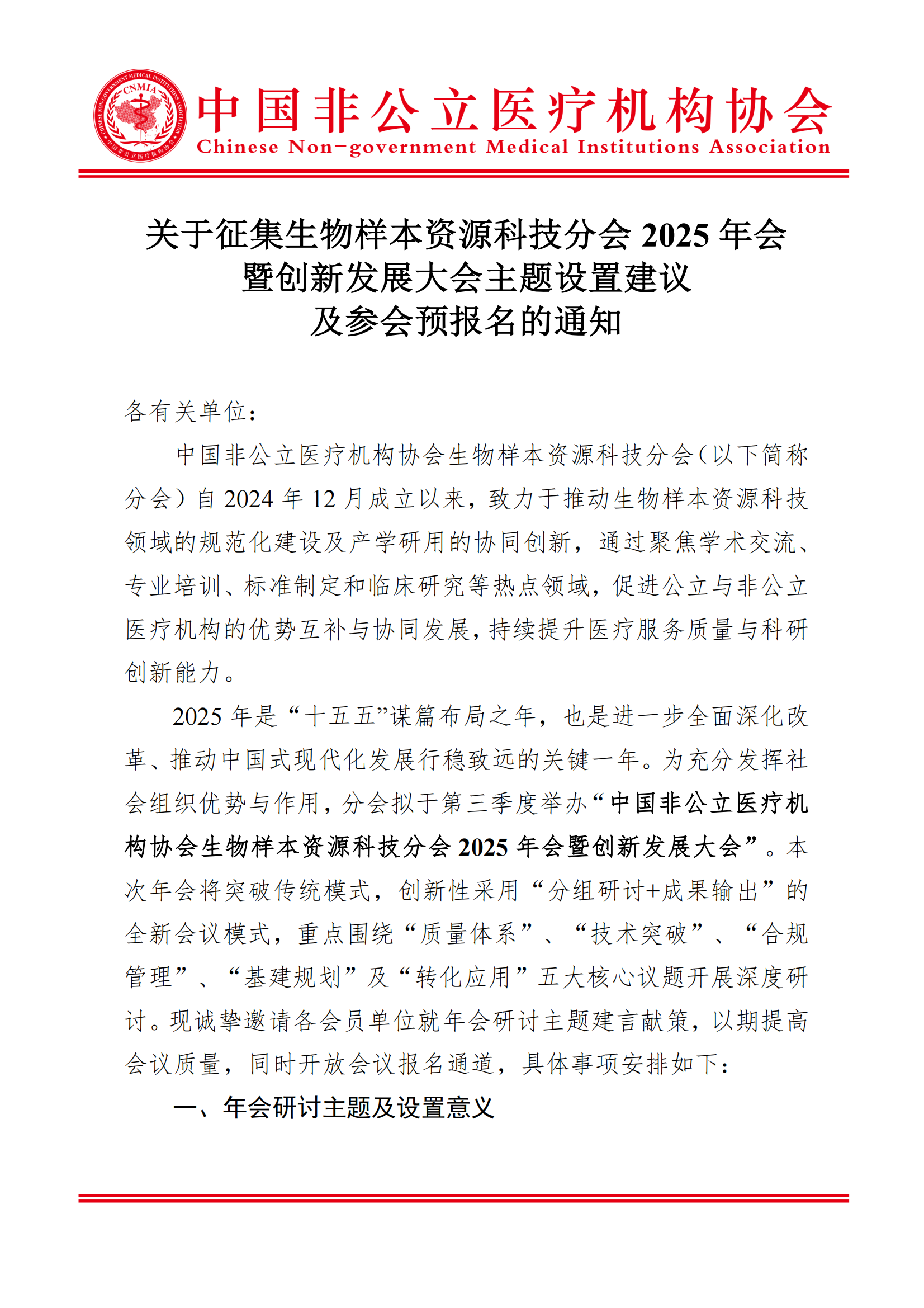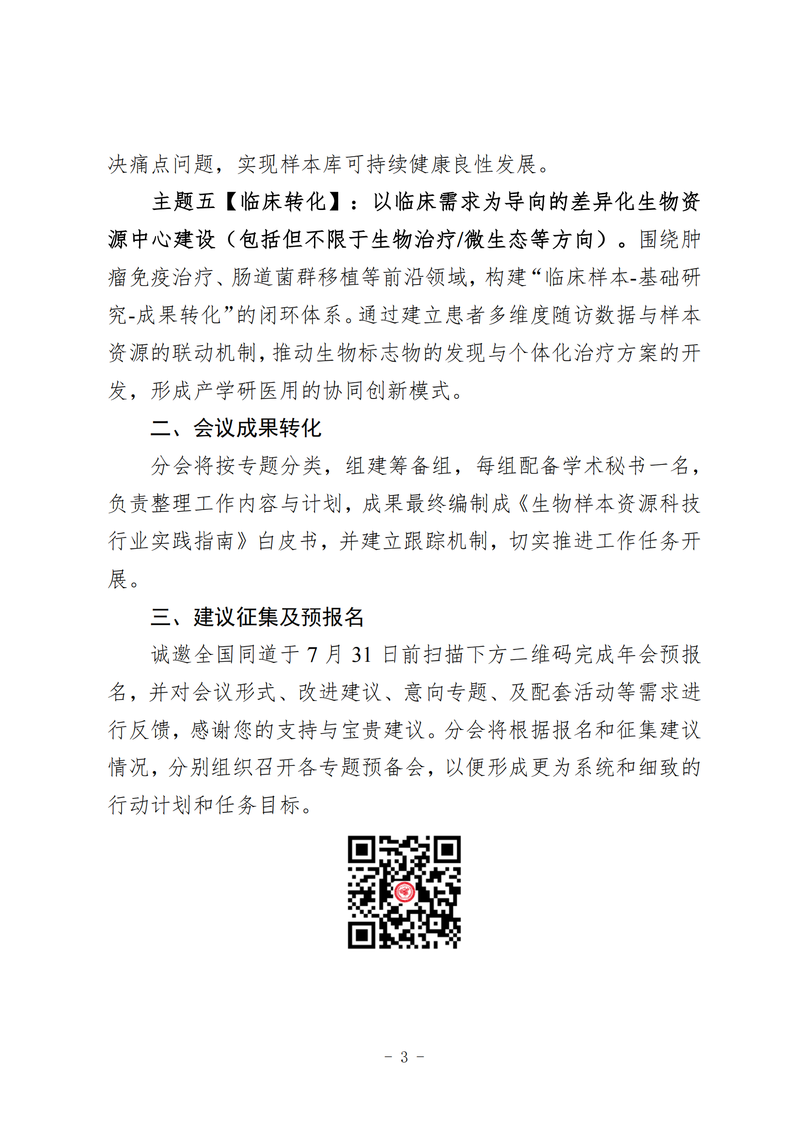 分支机构丨关于征集生物样本资源科技分会2025年会暨创新发展大会主题设置建议及参会预报名的通知
