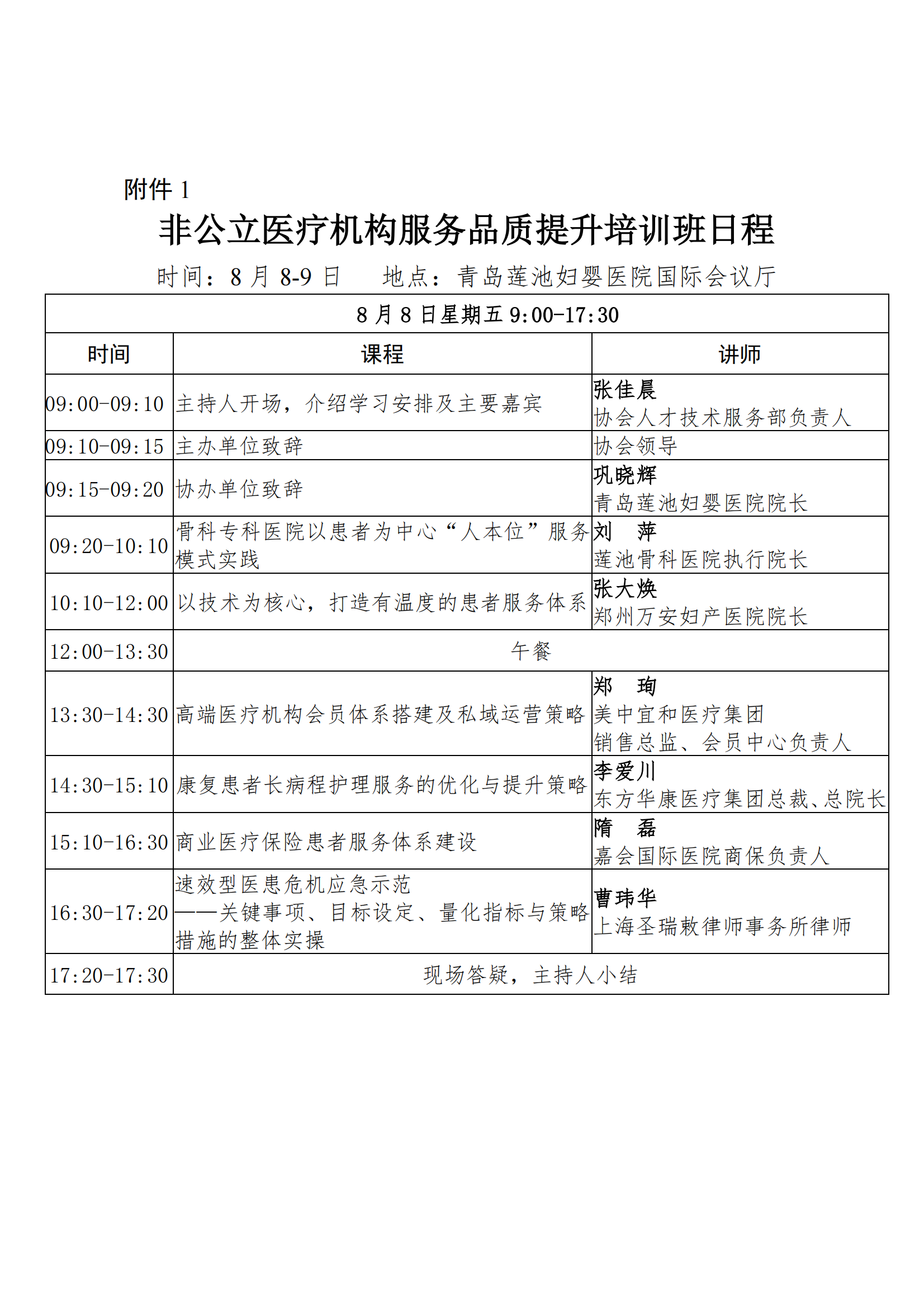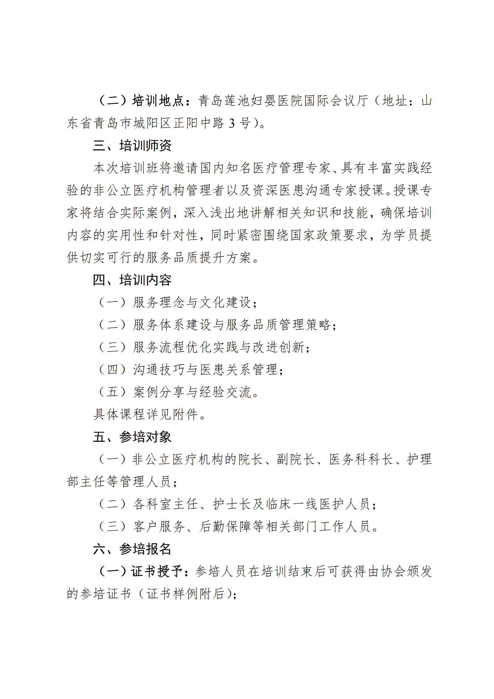 关于举办非公立医疗机构服务品质提升培训班的通知