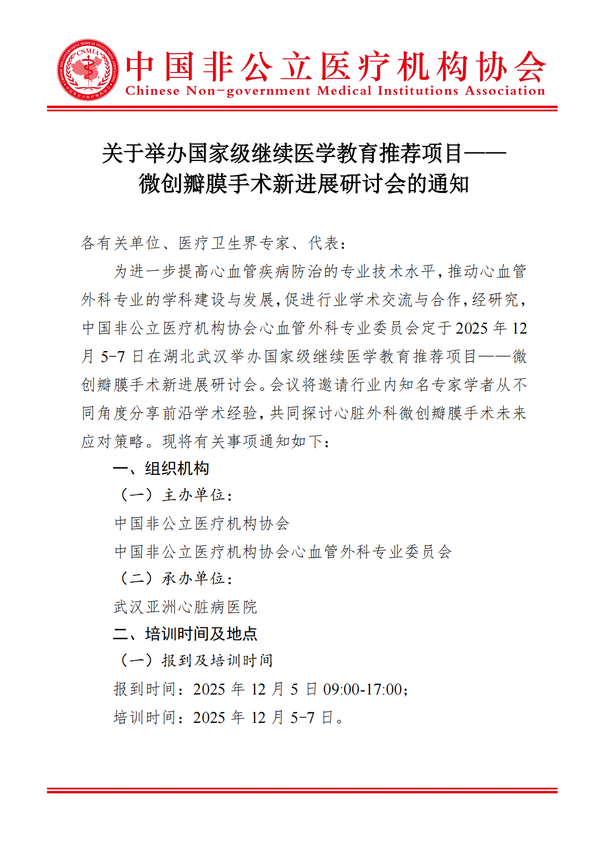 学分项目丨关于举办国家级继续医学教育推荐项目——微创瓣膜手术新进展研讨会的通知