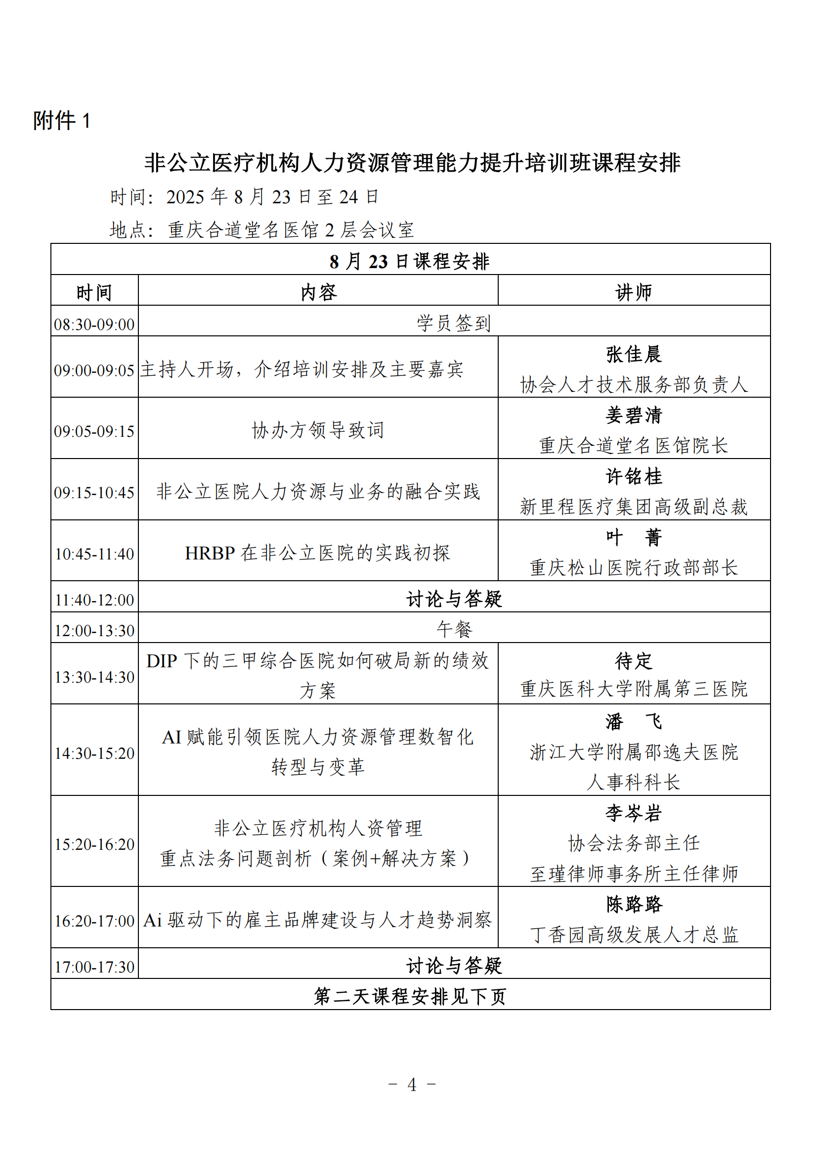 会议通知丨关于举办非公立医疗机构人力资源管理能力提升培训班的通知