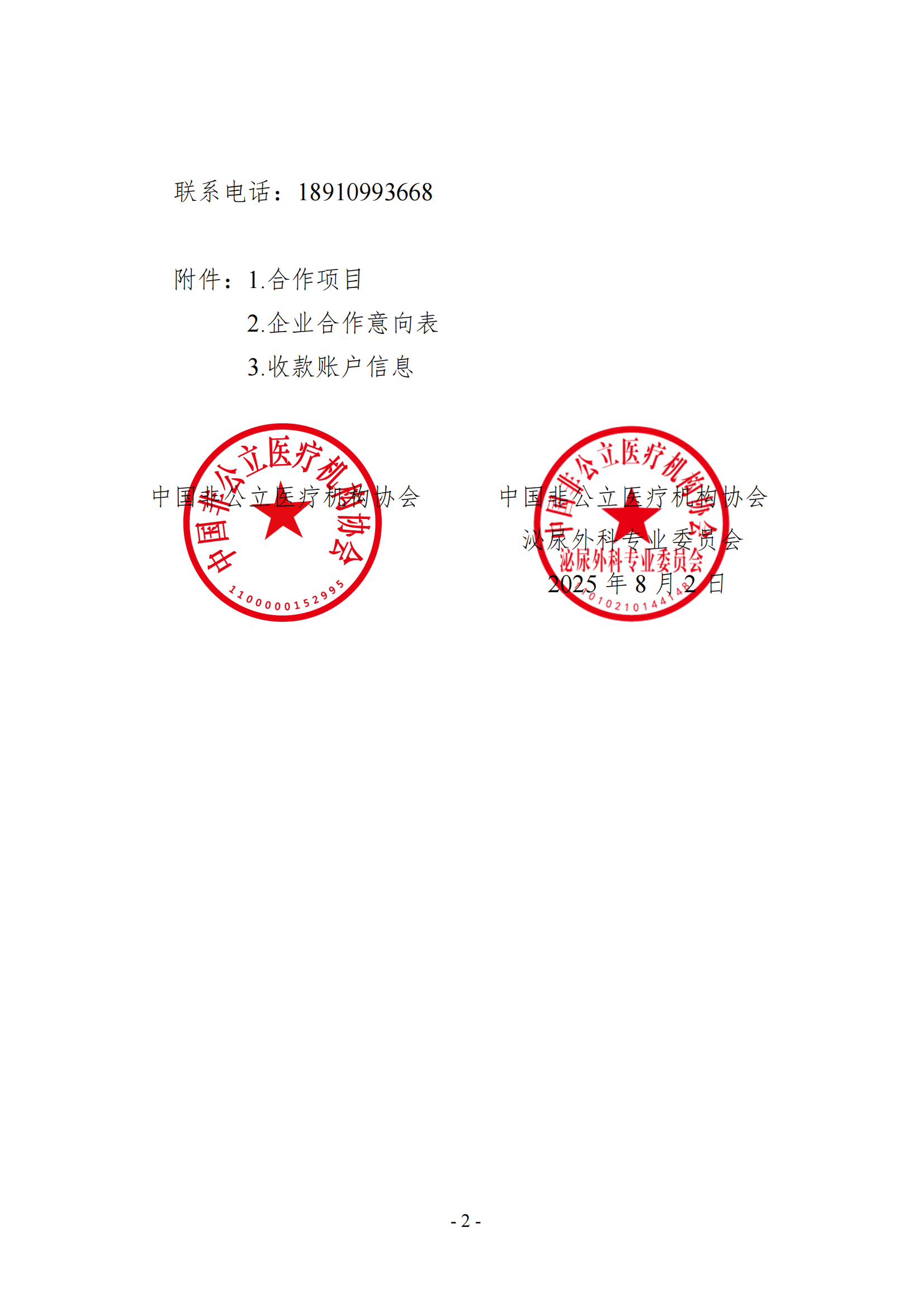 商务邀请函丨中国非公立医疗机构协会泌尿外科专业委员会2025年学术年会招商函