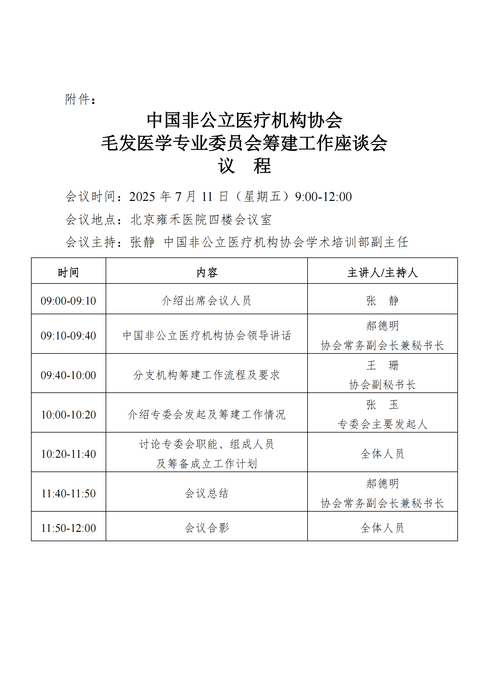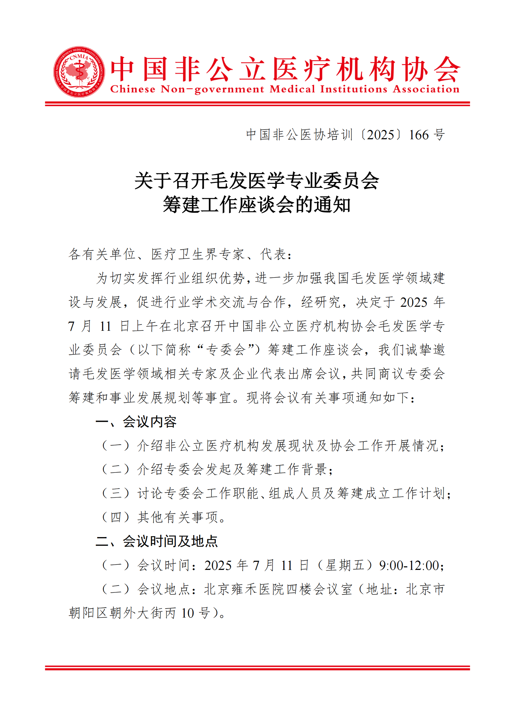 关于召开毛发医学专业委员会筹建工作座谈会的通知