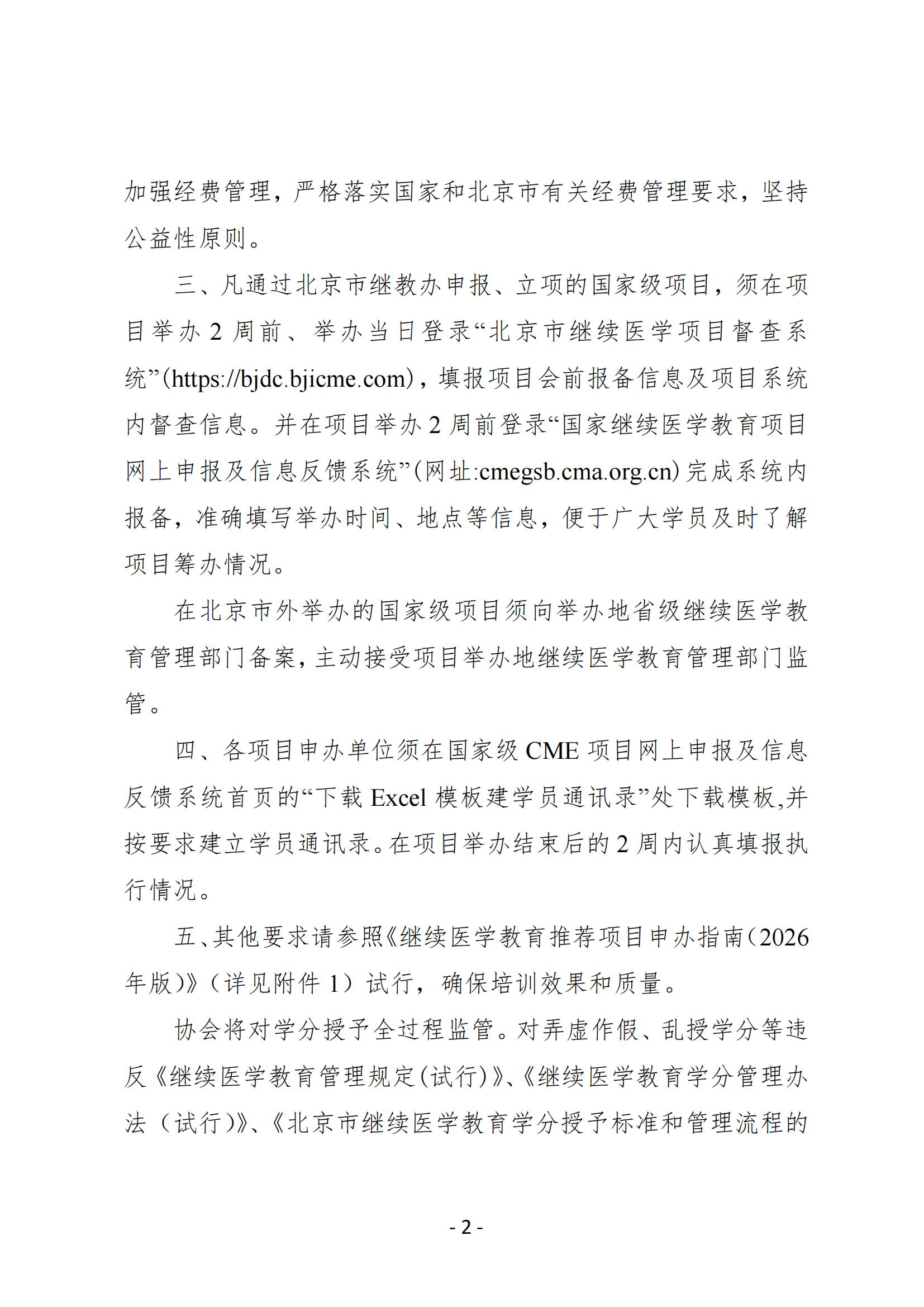 1.《继续医学教育推荐项目申办指南(2026年版)》