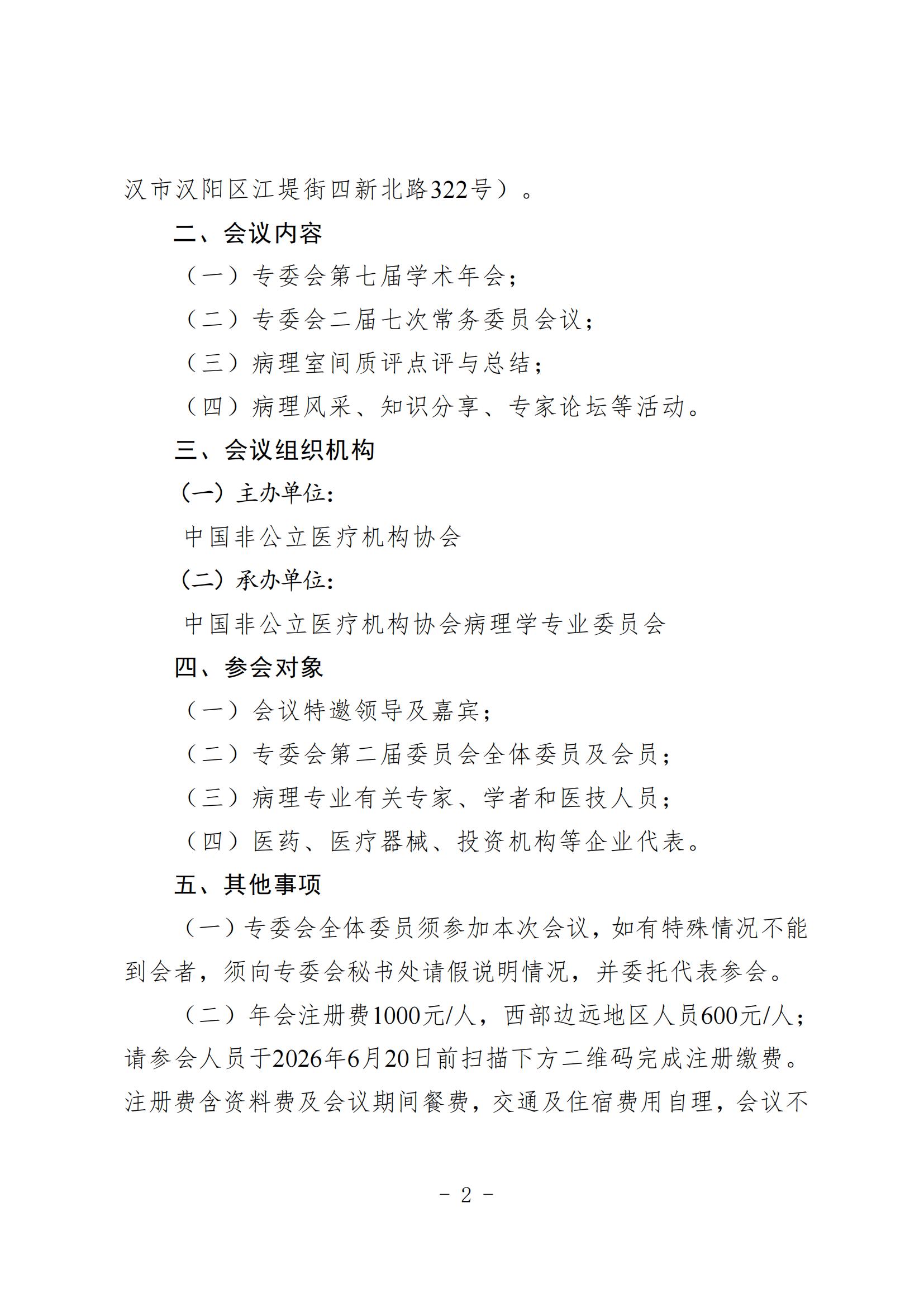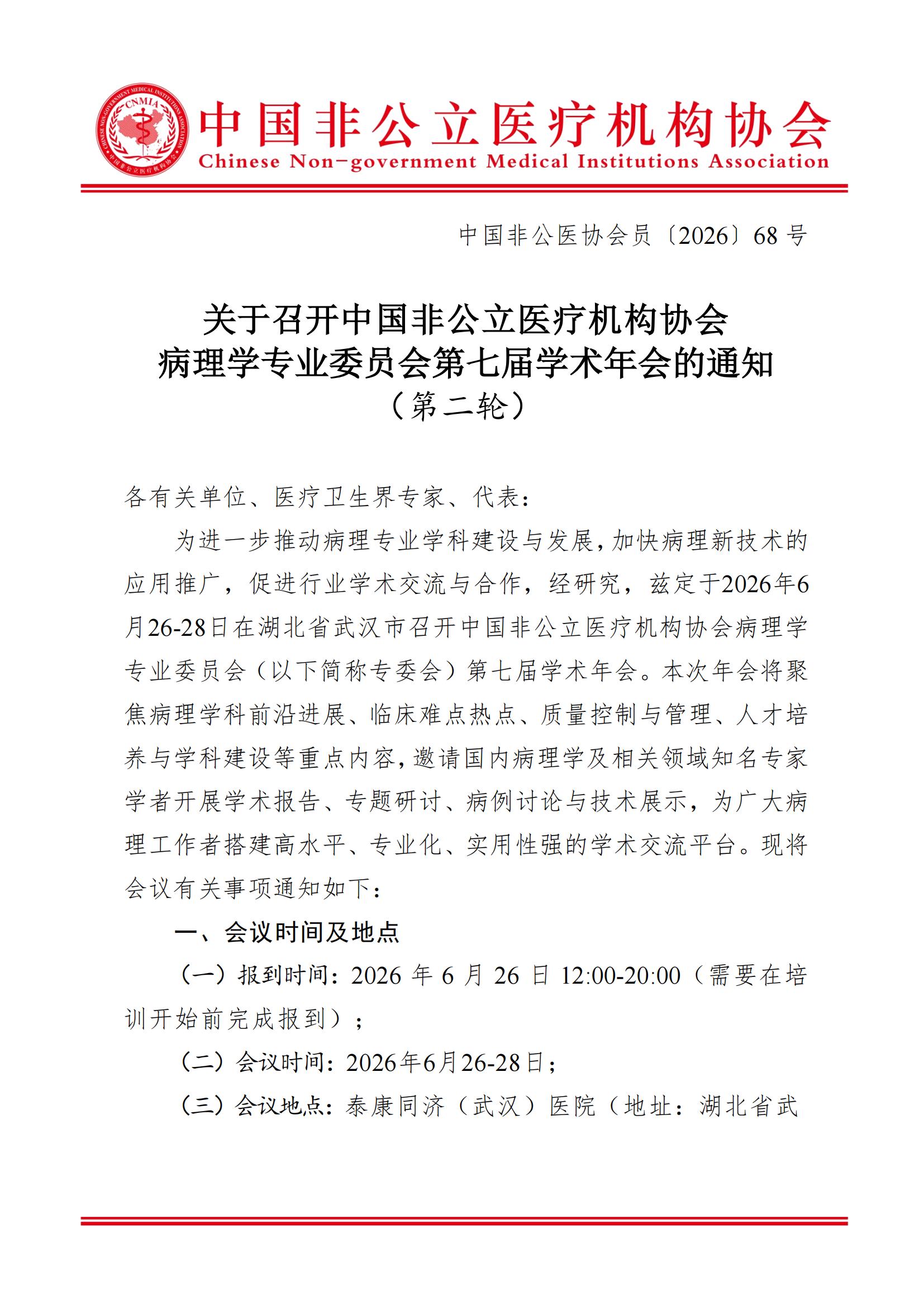 关于召开中国非公立医疗机构协会病理学专业委员会第七届学术年会的通知(第二轮)