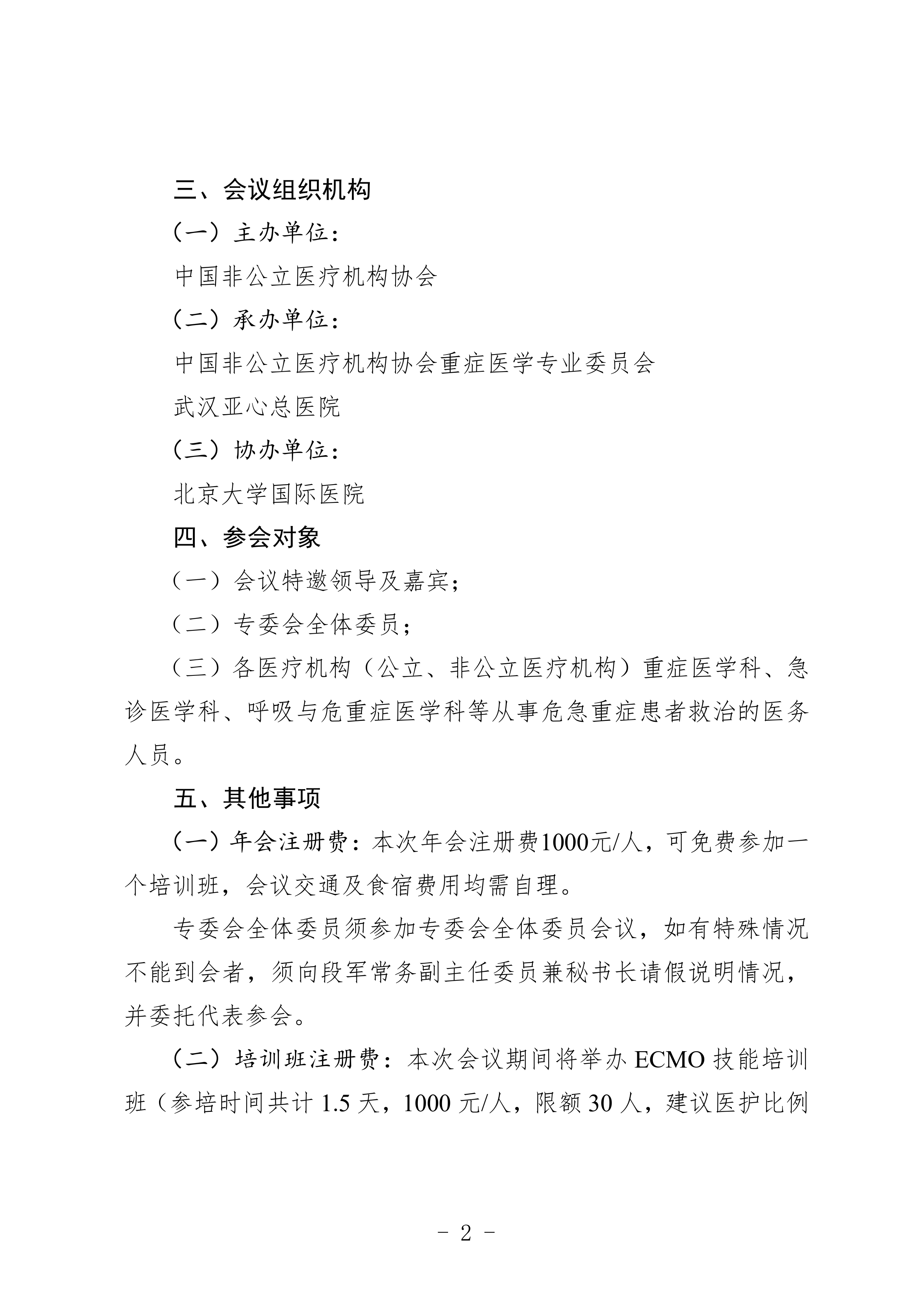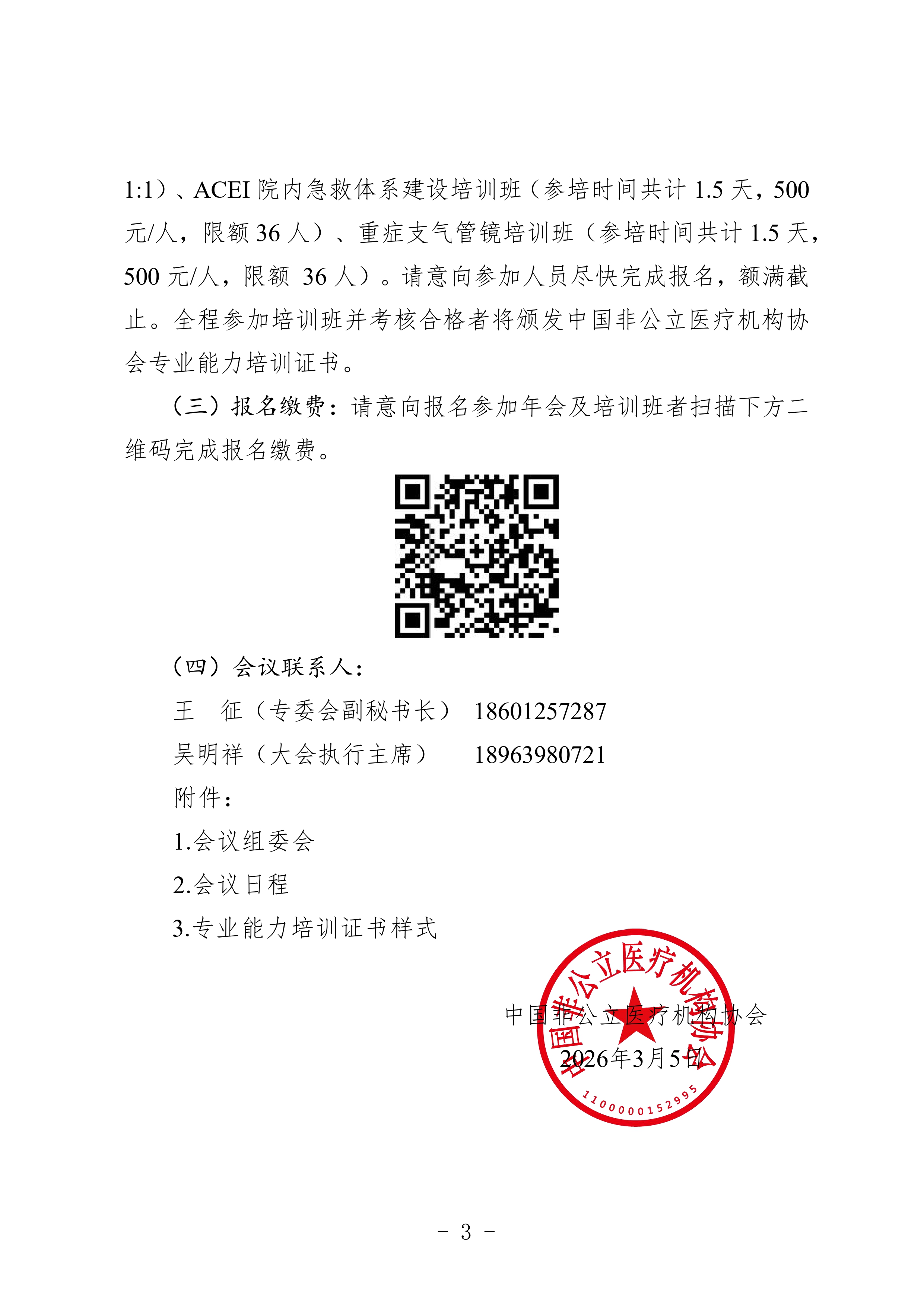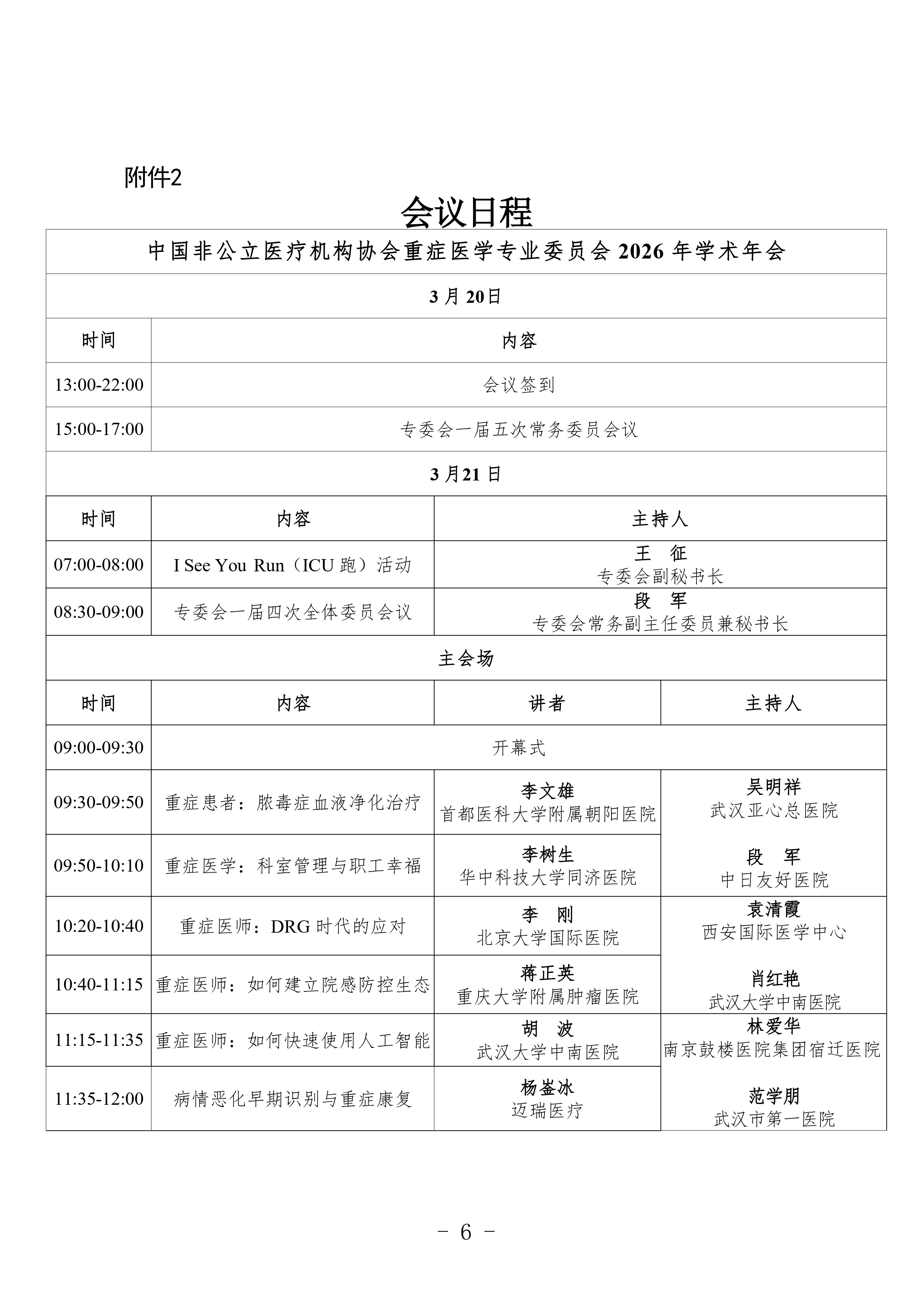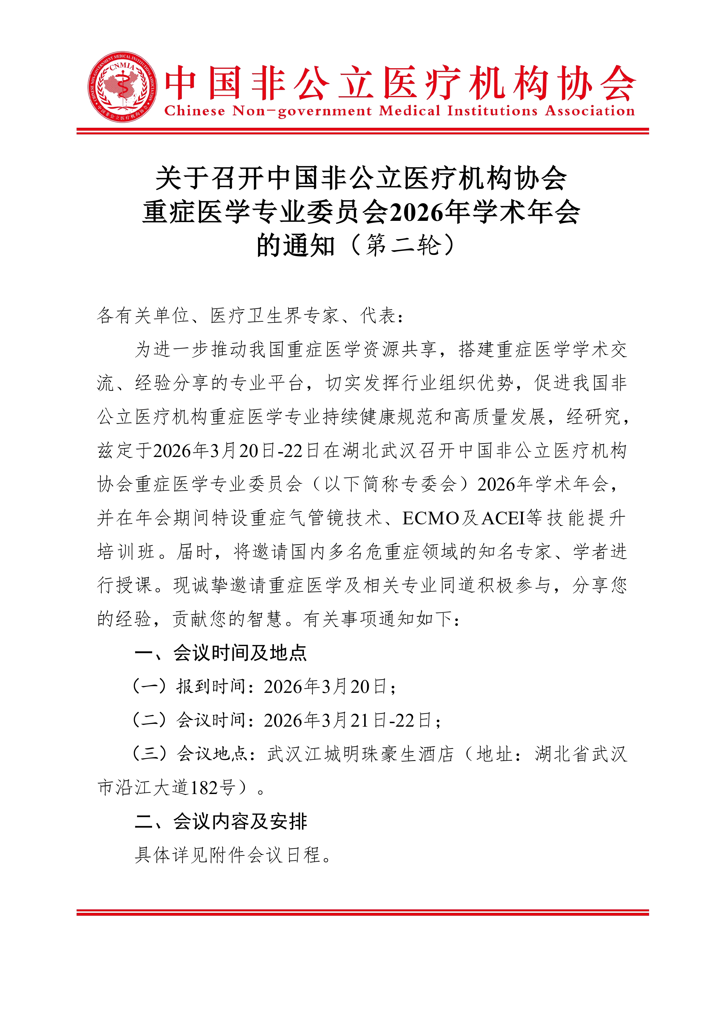 关于召开中国非公立医疗机构协会重症医学专业委员会2026年学术年会的通知(第二轮)